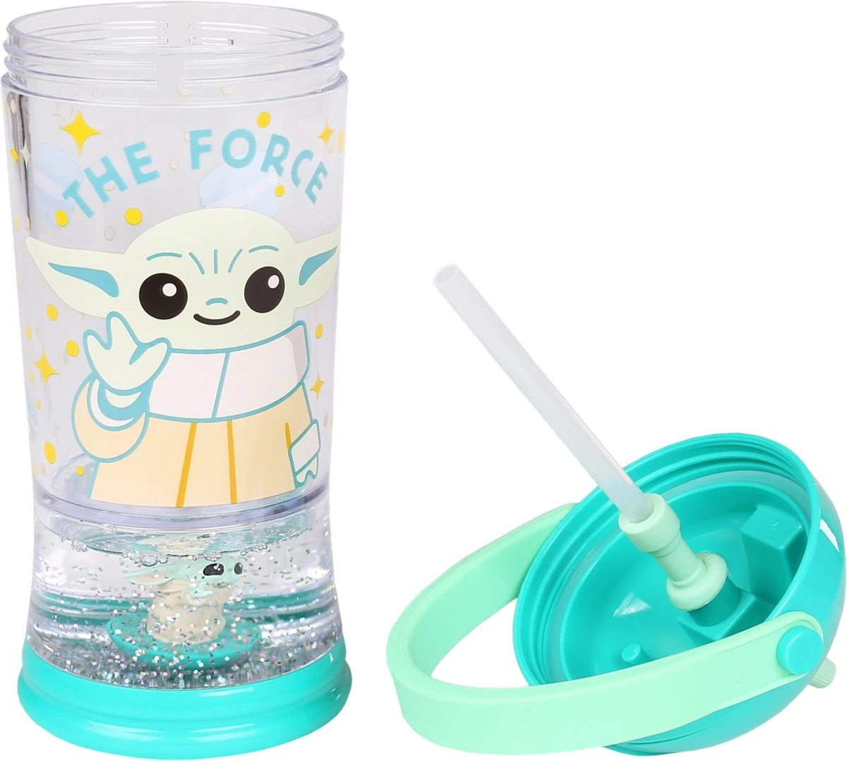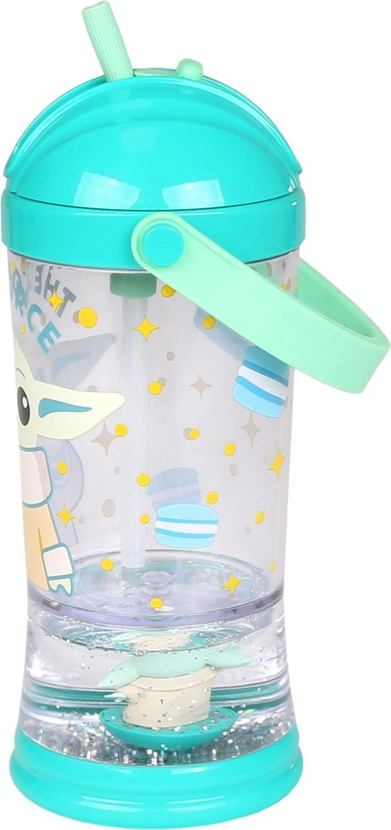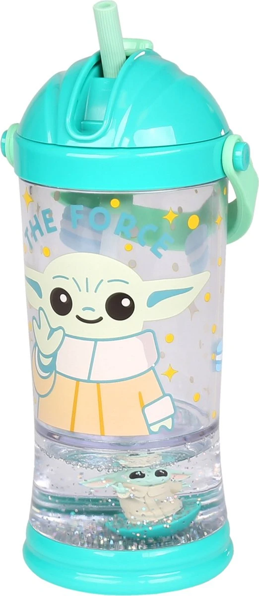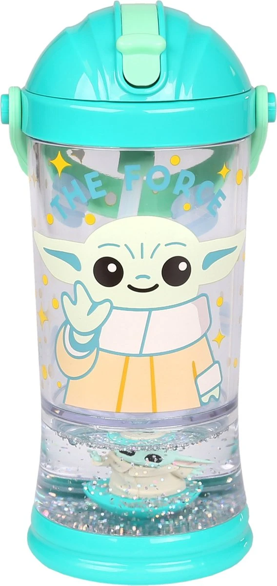 Disney Star Wars Bébé Yoda – Bouteille D’eau Avec Paille, Bouteille D’eau Liquide à Paillettes Et Figurine