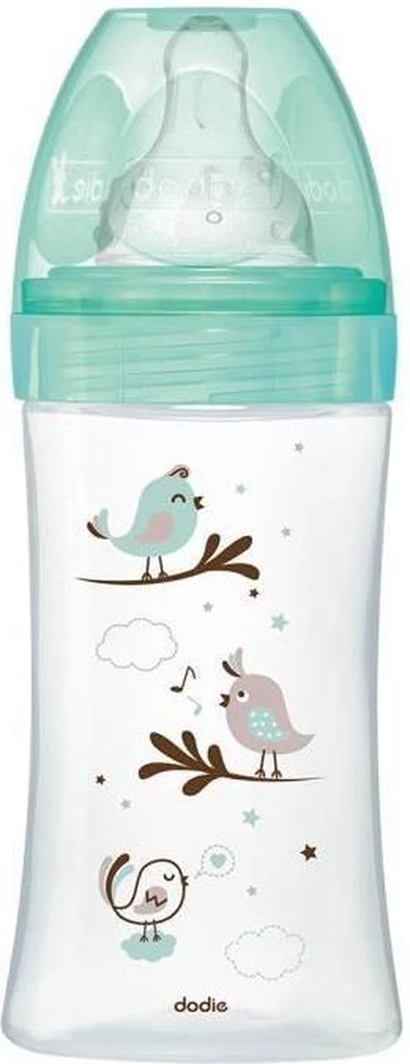 DODIE Flacon Anti-colique Initiation + VERRE 3 Vitesses Débit 2 – 270ml – VERT BIRDS