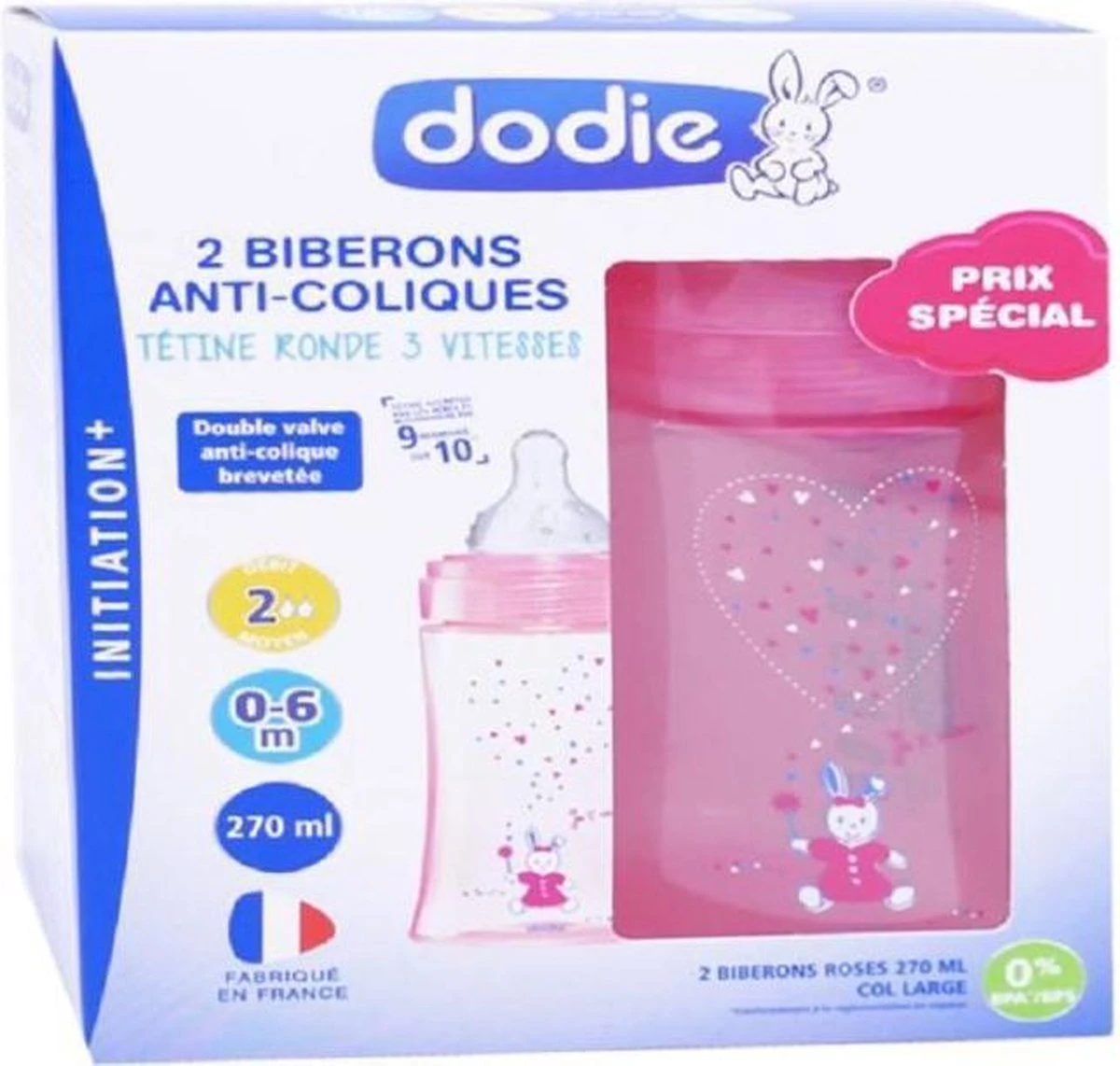 DODIE Lot De 2 Bouteilles Anti-coliques Initiation + – 270ml – ROSE Unicorne – 0-6 Mois – 3 Vitesses Trayons Rondes 2 Coulent