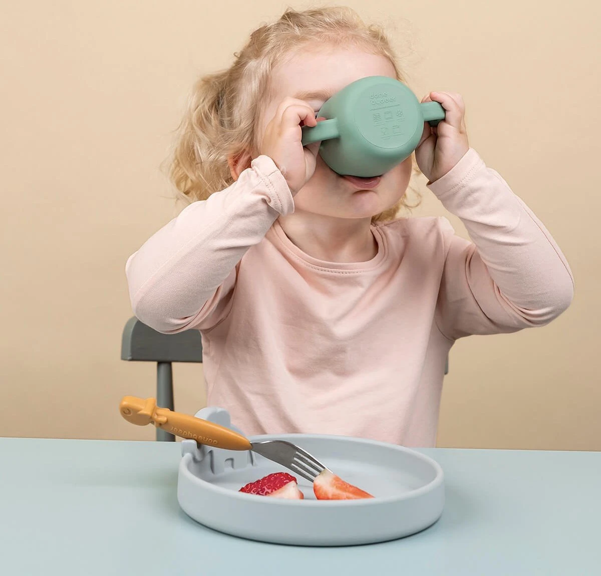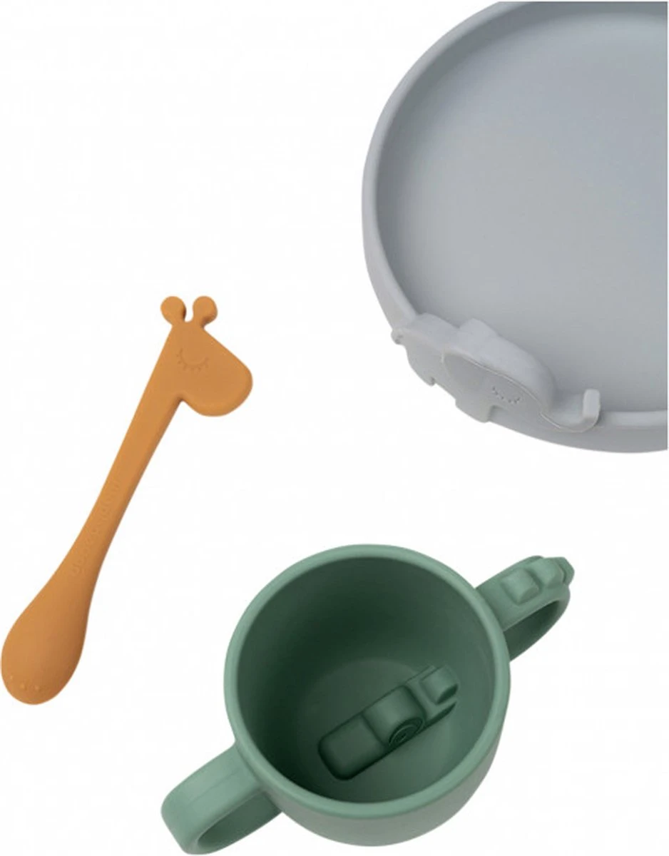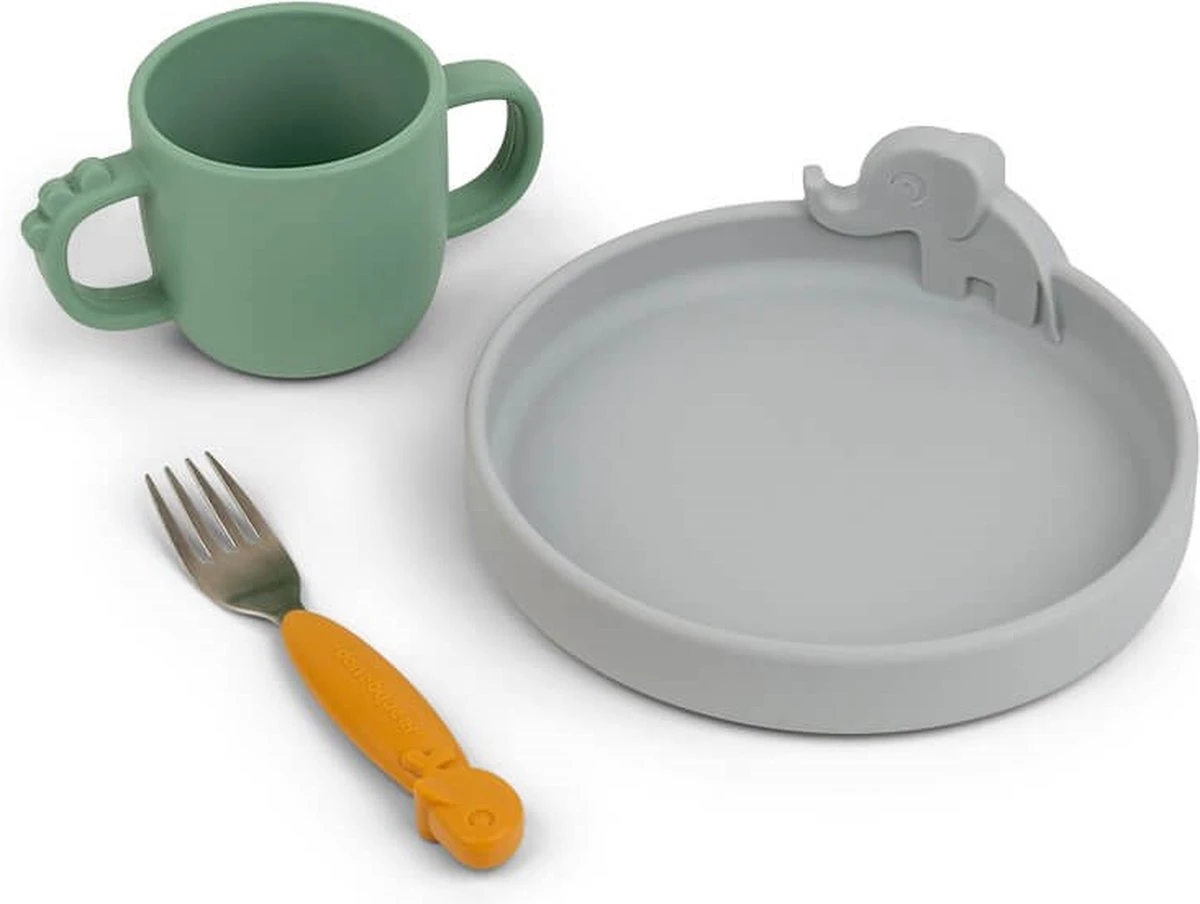 Avec cet ensemble de dîner Peekaboo Done By Deer Deer Friends, votre tout-petit peut manger et boire de façon autonome. L’ensemble se compose d’une assiette, d’une cuillère et d’une tasse. Les articles ont un design amusant et reconnaissable pour que votre enfant reste amusant à manger. L’ensemble de table est en silicone et passe au lave-vaisselle et au micro-ondes.