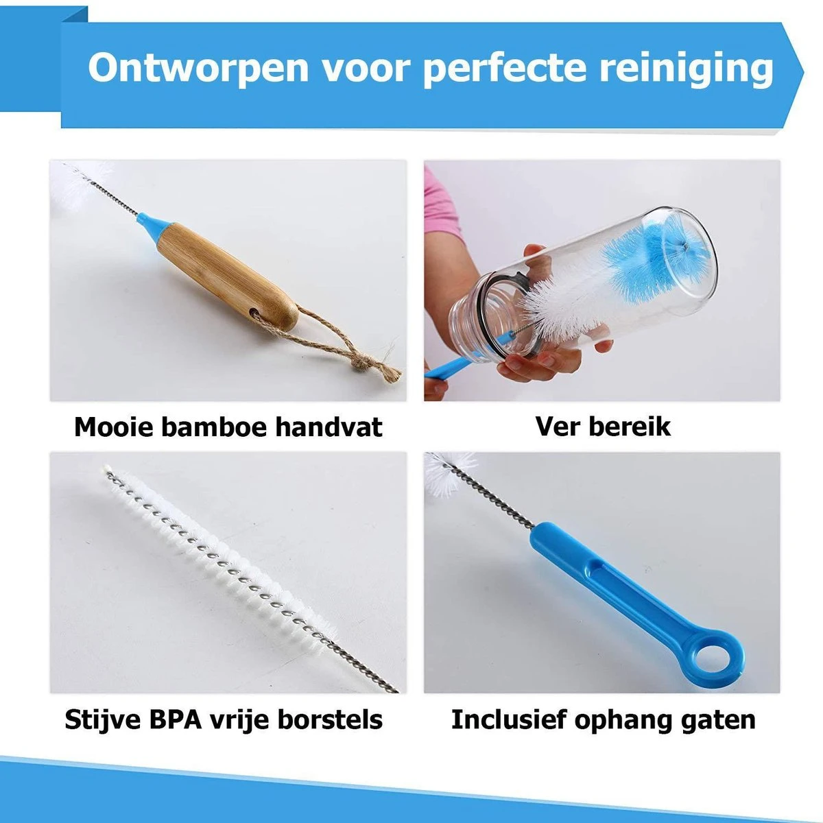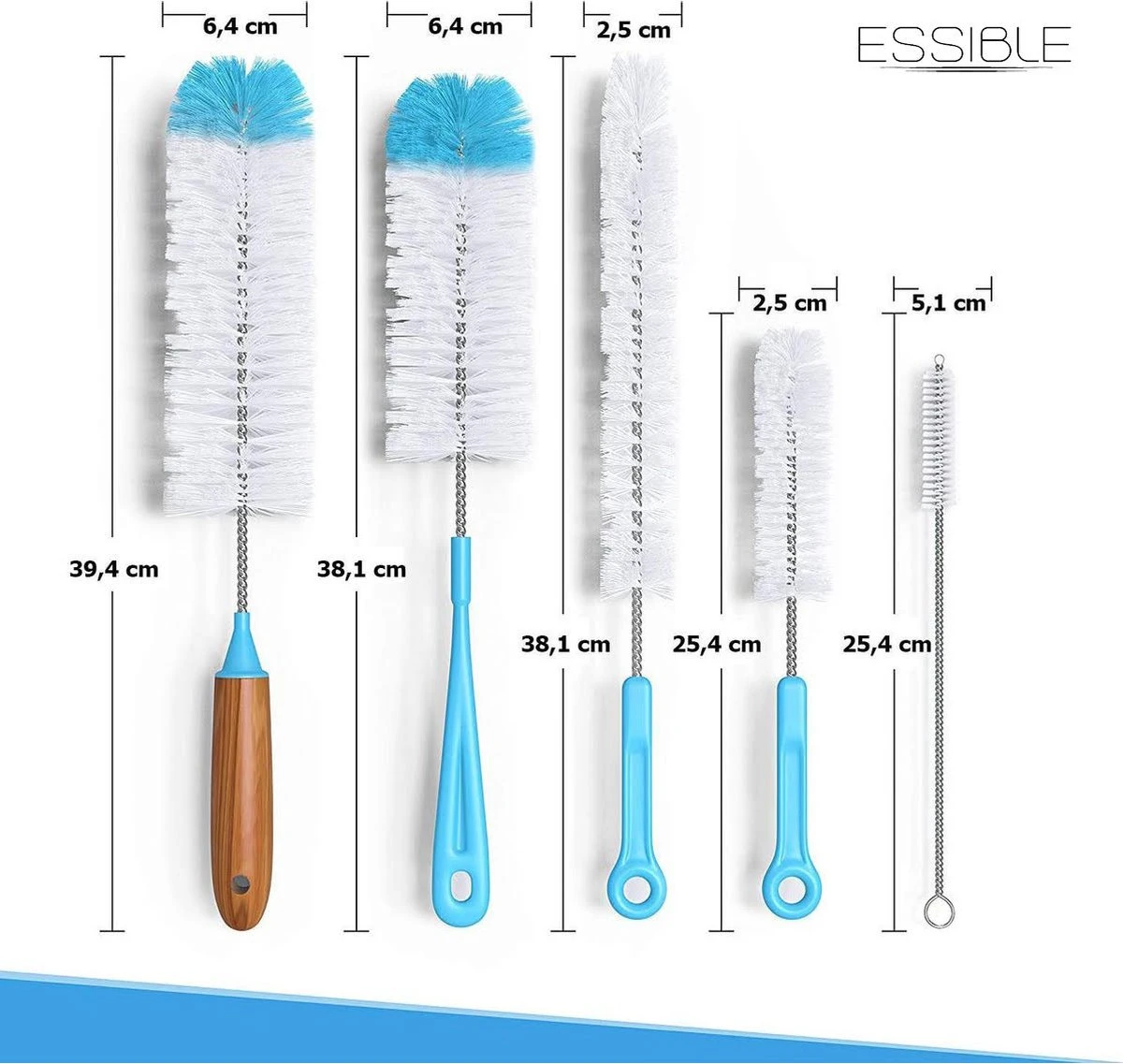 - Brosse Extra longue et étroite: idéale pour nettoyer les bouteilles.