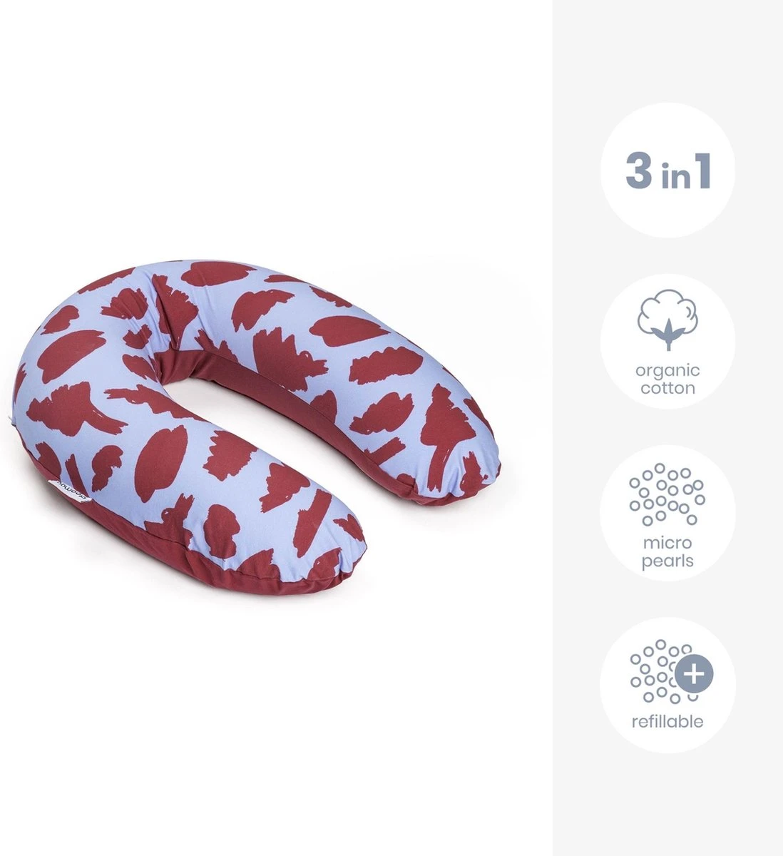 Grâce à ses microbilles ultra fines et silencieuses, le doomoo Buddy se moule pour vous aider à trouver votre position favorite. Ce coussin vous permettra de dormir confortablement pendant votre grossesse, de pratiquer des exercices de relaxation ou de nourrir votre tout-petit après sa naissance. Après la grossesse, le Buddy combiné à la Relax Cover se transformera en un petit nid sécurisé sur lequel bébé peut jouer et se reposer.
