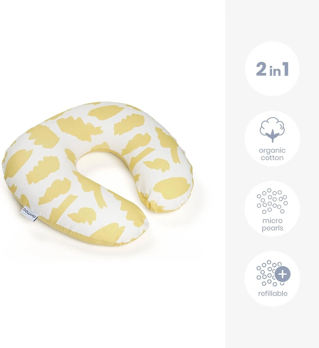 Doomoo Softy – Petit Coussin D’allaitement – Billes Ultra Fines Et Silencieuses – Coton Organique – 150 Cm – Brushes Yellow