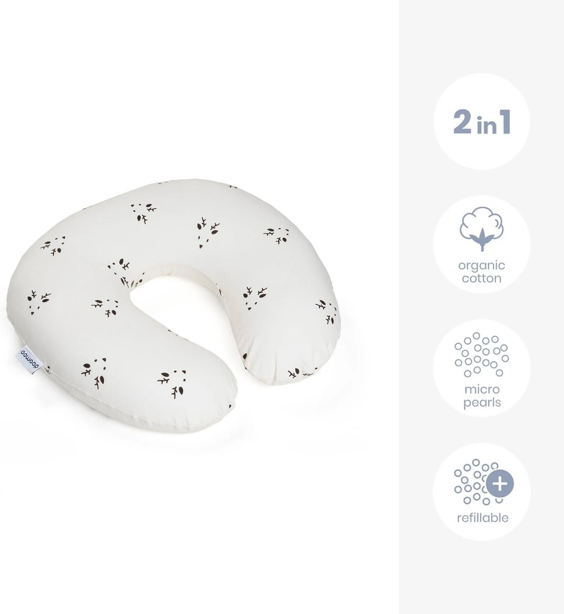 Doomoo Softy – Petit Coussin D’allaitement – Billes Ultra Fines Et Silencieuses – Coton Organique – 150 Cm – Deer