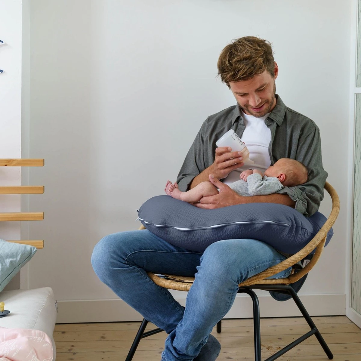 Le doomoo Softy est un petit coussin d’allaitement ultra-confortable qui se place autour de votre taille quand vous donnez le sein ou le biberon. Bébé y sera aussi confortablement installé et bien maintenu, allongé ou assis pour jouer.