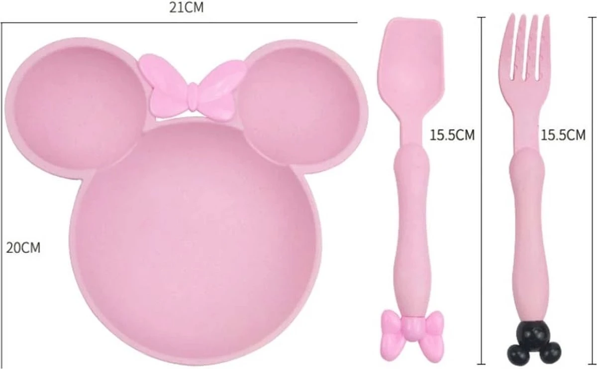 Composé de 1 assiette avec 3 compartiments, une fourchette et une cuillère