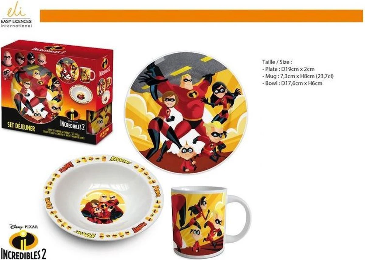 Avec cet ensemble déjeuner / petit-déjeuner amusant de The Incredibles, votre enfant adorera manger! Cet ensemble est fait de céramique et va au lave-vaisselle et au micro-ondes!