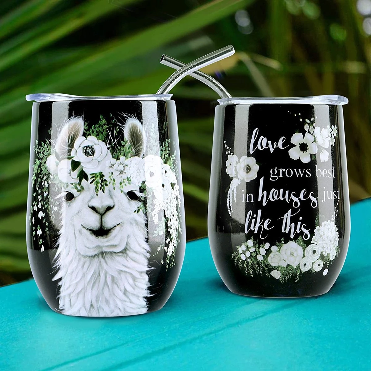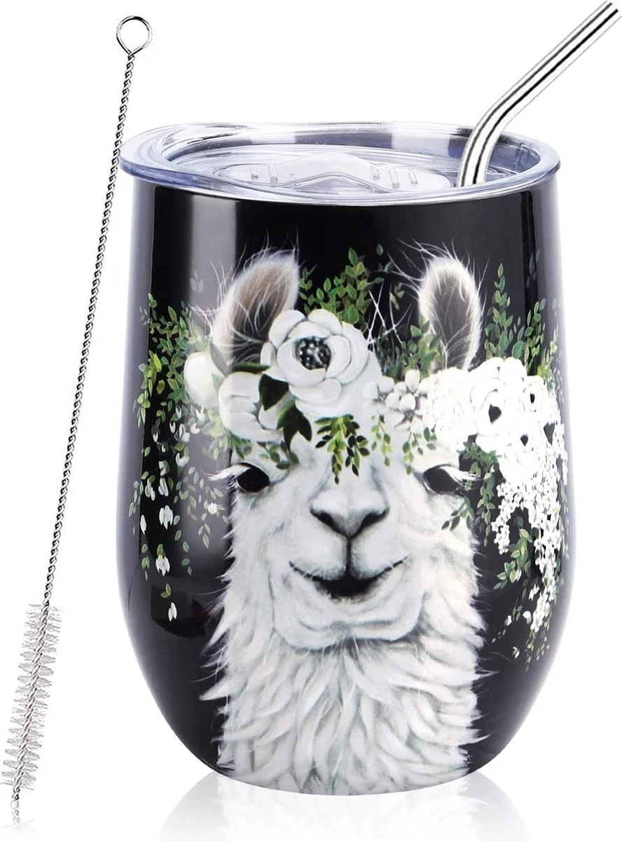 - Design Uniek : le motif du gobelet à vin isotherme NymphFable est exclusivement conçu. Un alpaga mignon portant des fleurs blanches, combiné avec des énonciations et un fond noir, a l’air drôle, personnel et à la mode. Non seulement parfait pour la conduite, les vacances, le camping, mais également idéal pour une utilisation quotidienne à la maison, au bureau ou à l’école pour vous apporter de la bonne humeur.