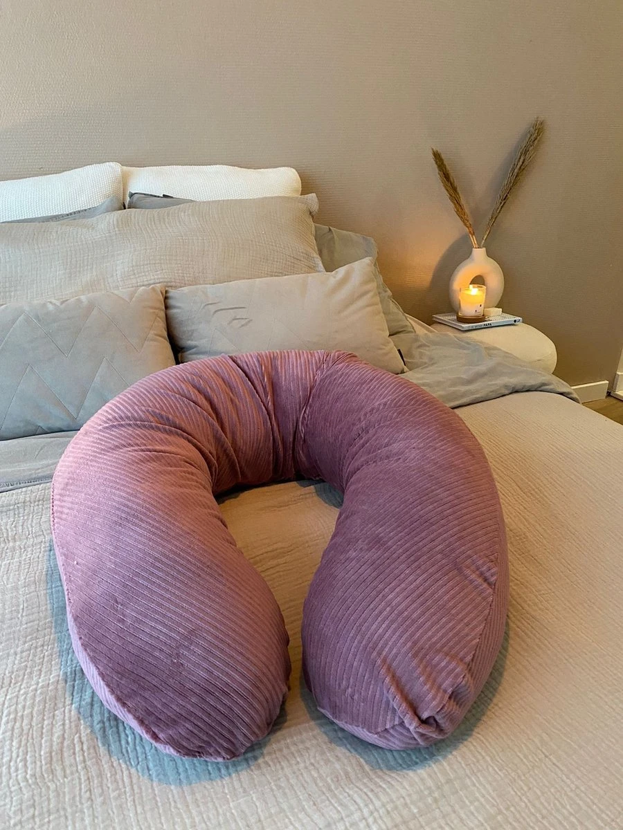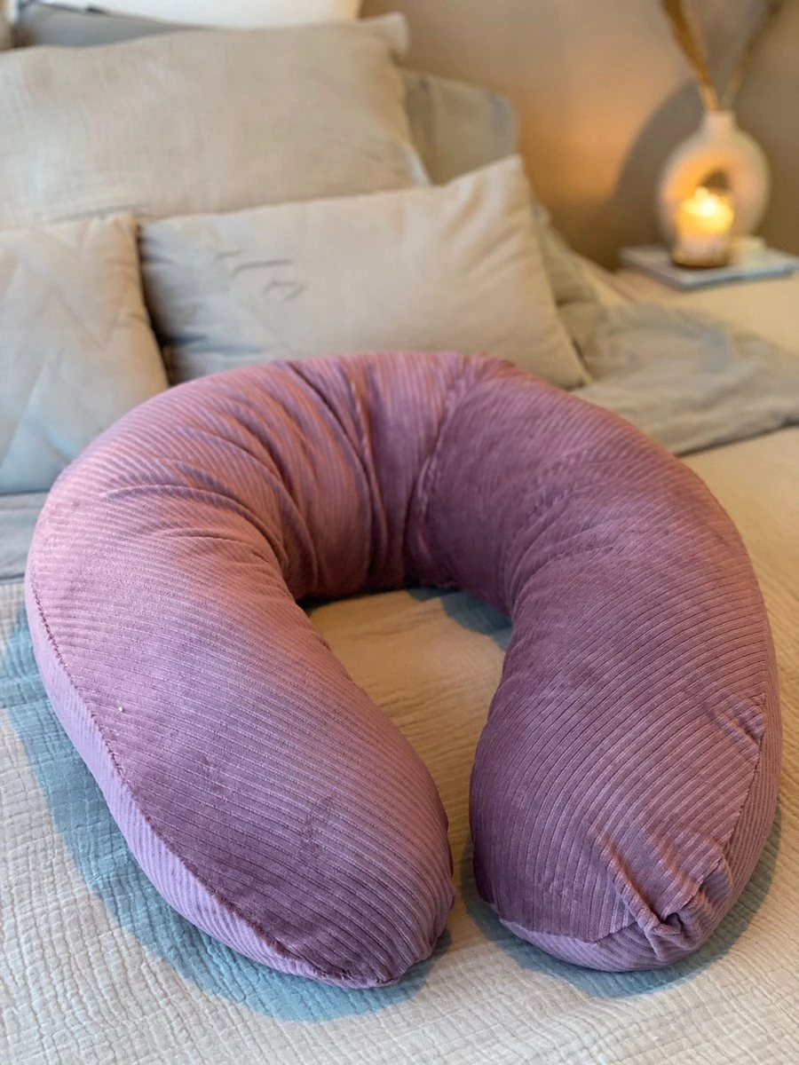 Cette housse pour votre coussin d’allaitement est faite d’un tissu côtelé doux.