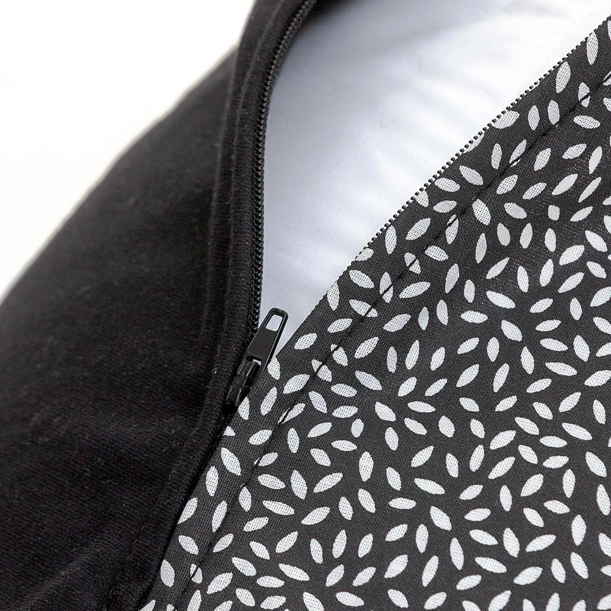 La taie d’oreiller d’allaitement Stilles Snoozzz est composée à 100% de coton et d’un tissu extensible doux qui aère bien. Le haut en coton a un imprimé noir et blanc, le bas est en tissu stretch noir.