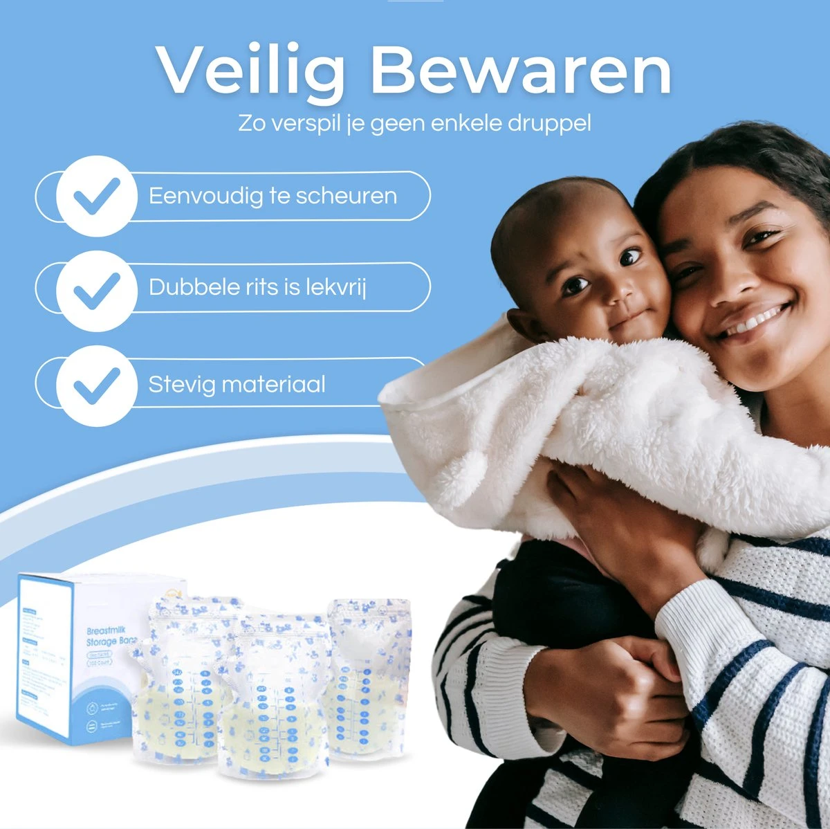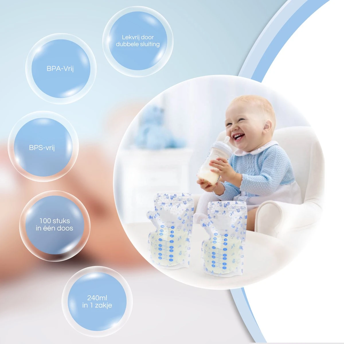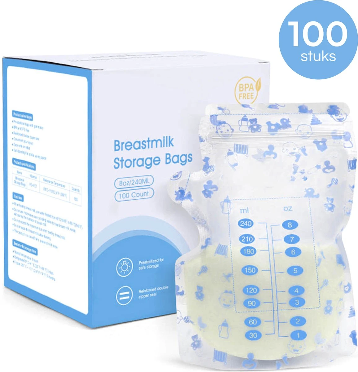 Grâce à la fermeture double face, vous êtes sûr à 100% qu’il ne fuira pas. Vous pouvez contenir jusqu’à 240 ml de lait maternel dans chaque sachet. Les sacs sont sans BPA et peuvent donc être utilisés pour allaiter votre tout-petit. Avec 100 pièces dans le paquet, vous avez un stock pour le moment !