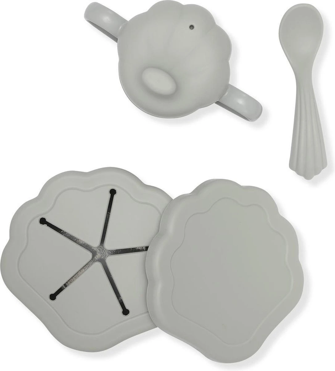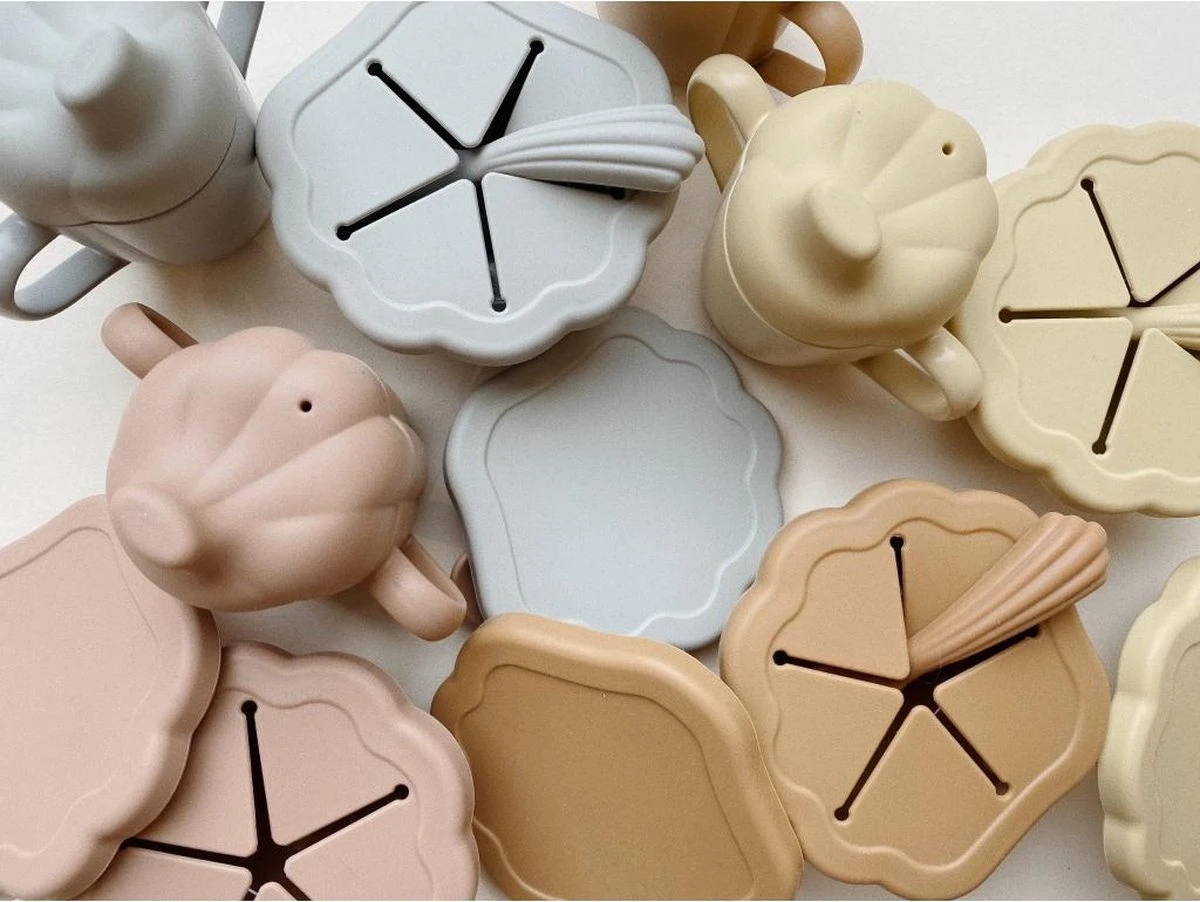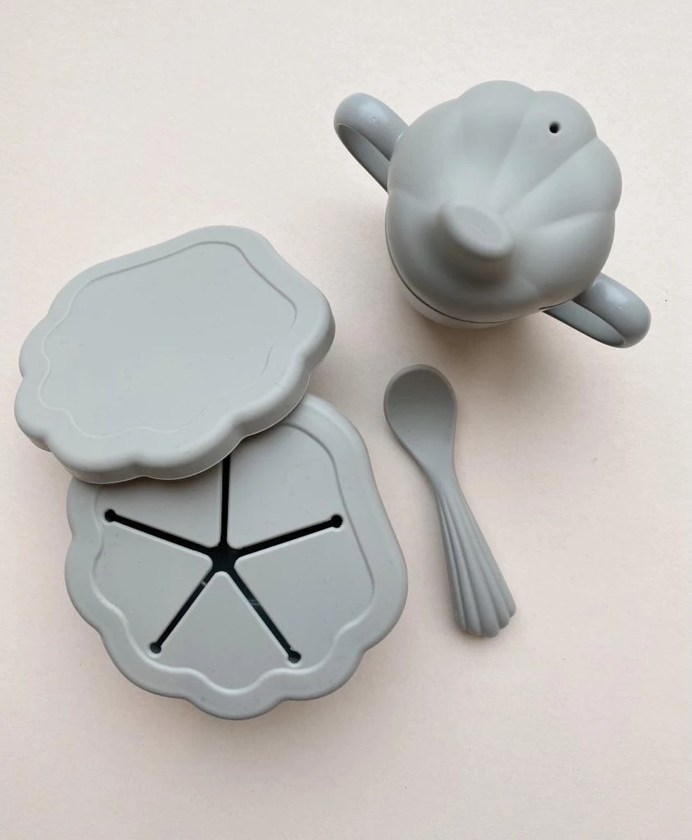 - Matériaux couvercles, bec verseur et cuillère : 100 % silicone, sans BPA – testé LFGB / Matériau gobelet et bol : 100 % polypropylène, sans BPA – testé LFGB