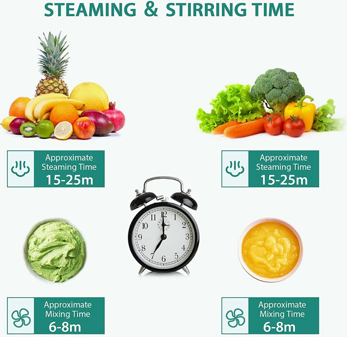- Multi-fonctions : cuisson automatique, cuisson vapeur, stérilisation, jus, purée, poignée striée – conception tactile, production complète de légumes, fruits, viandes ou crustacés sur n’importe quel aliment, pour bébés et tout-petits en 15 minutes, d’une simple pression sur un bouton .