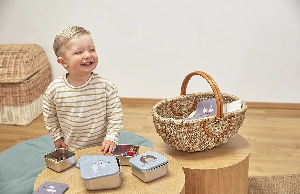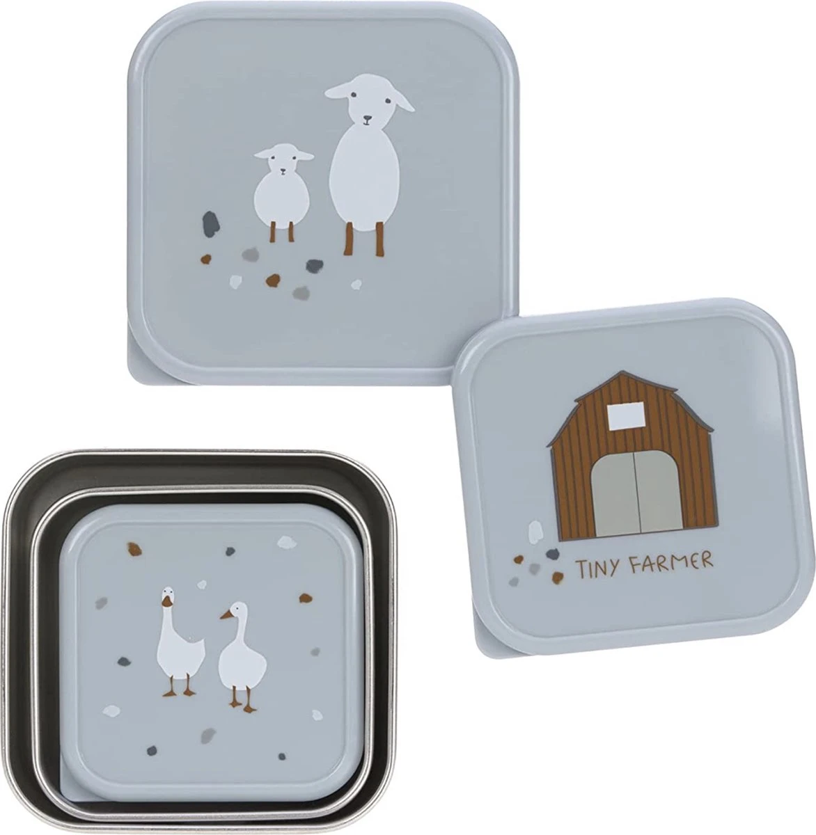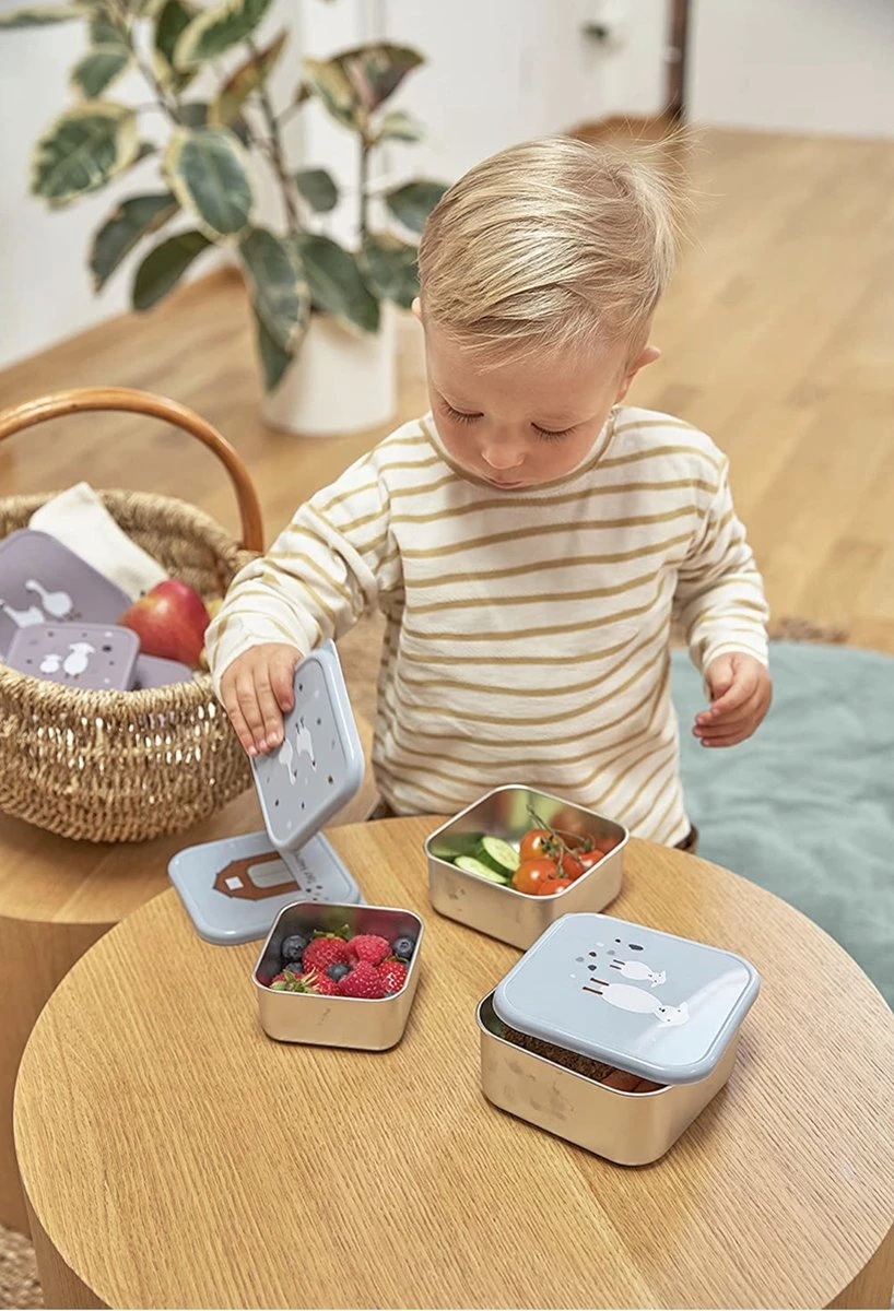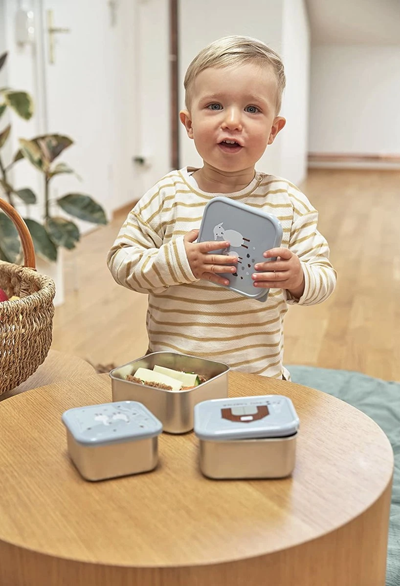 LÄSSIG Boîte à Collation Inox | Acier 3 Pac Assortiment Tiny | Blue Fermier | Lassig