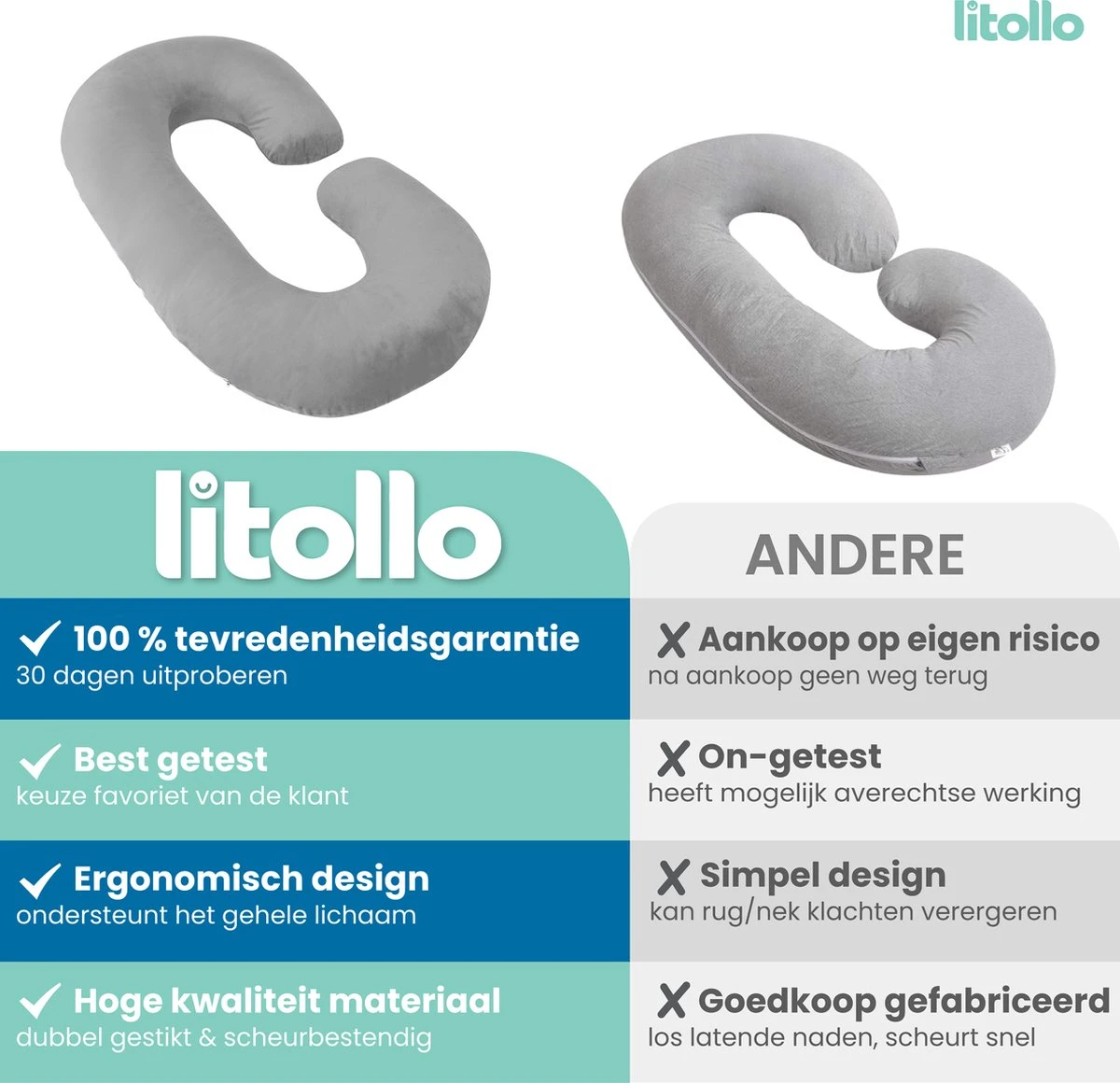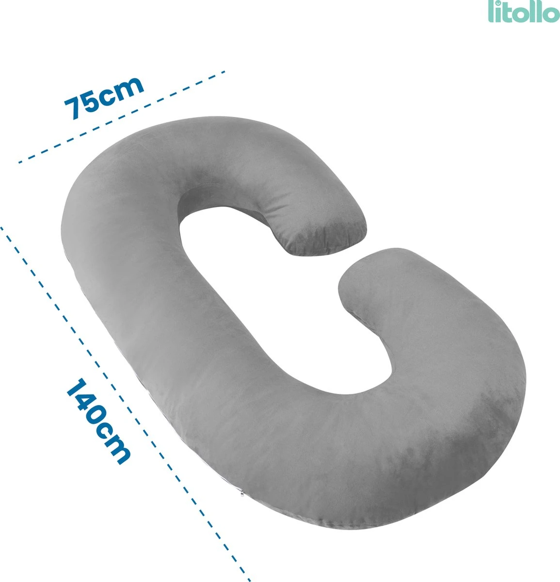 Litollo® Oreiller De Grossesse (forme C) – Oreiller D’allaitement – Oreiller De Corps – Oreiller De Couchage Latéral – Oreiller De Corps – Grijs