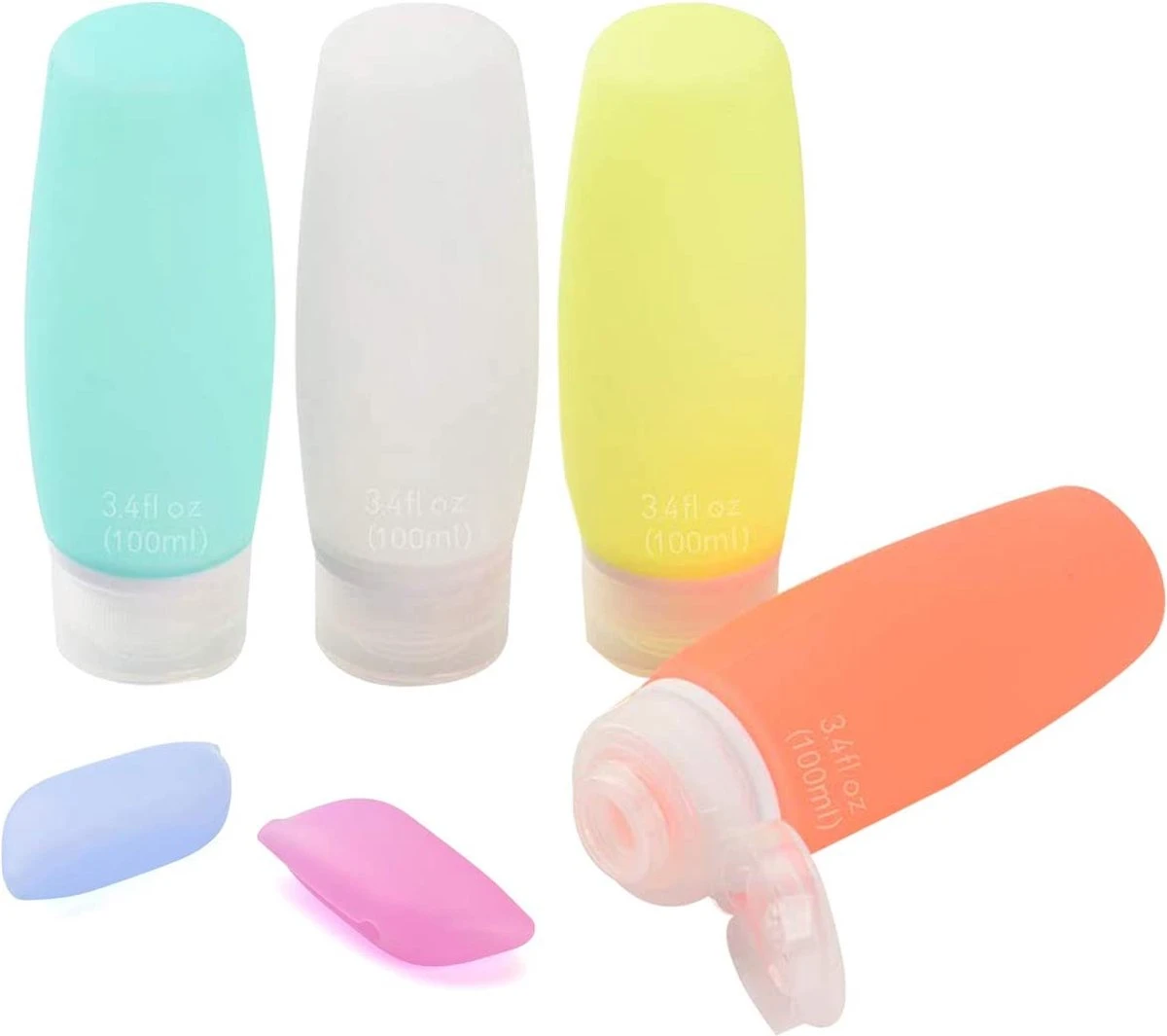 Lot De 100 Ml De Bouteilles De Voyage En Siliconen Avec Trousse De Toilette Transparente, 6 Récipients De Voyage Anti-fuite Et Ensemble De Toilette De Voyage, Récipient De Liquide Rechargeable Approuvé Par La FDA, Coloré