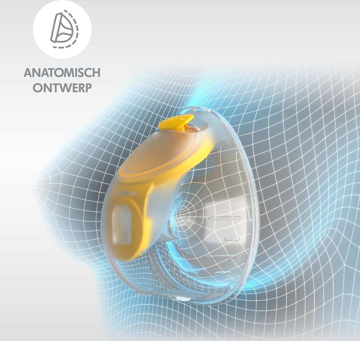 • Design anatomique : Les gobelets de collecte mains libres sont spécialement conçus pour maximiser le débit de lait. La moitié inférieure plus large soutient le dessous du sein, tandis que la surface lisse et le bord évasé du sein aident à prévenir la pression sur les conduits de lait.