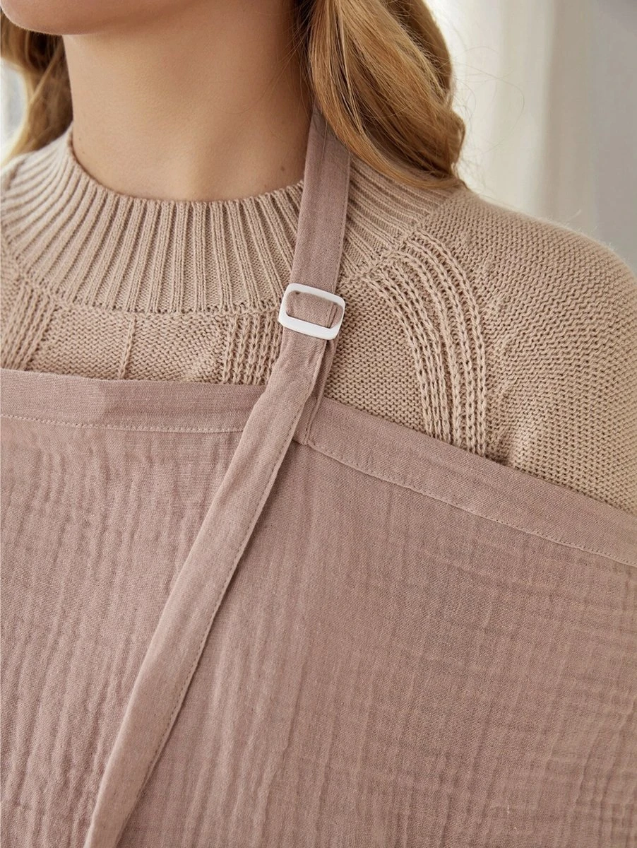 Au sommet du tissu d’alimentation, il y a une doublure. Cette gaine présente une courbure en demi-cercle. Grâce au renflement en haut du vêtement d’allaitement, vous maintenez le contact visuel et le bébé reçoit suffisamment d’air frais. Vous créez la sécurité pour le bébé.