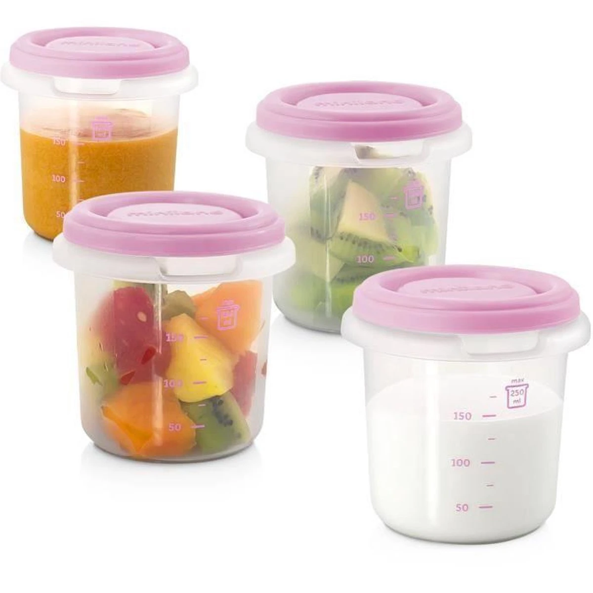 MINILAND – Ensemble De Quatre Récipients Hermétiques De Haute Qualité Avec échelle Graduée, Ensemble Rose Hermétique