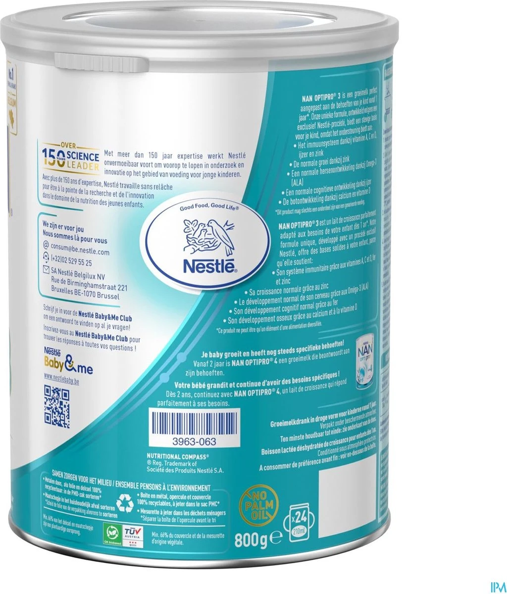 Nestlé® NAN OPTIPRO 3 Lait Croissance De 1 An – Bébé Lait Maternisé – 1 X 800 Gr
