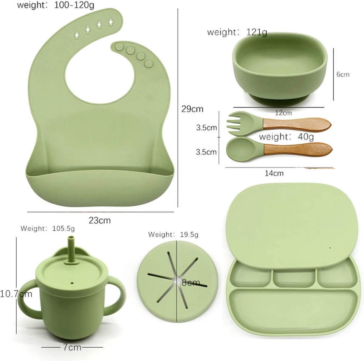Cet ensemble de vaisselle en silicone se compose des pièces suivantes :