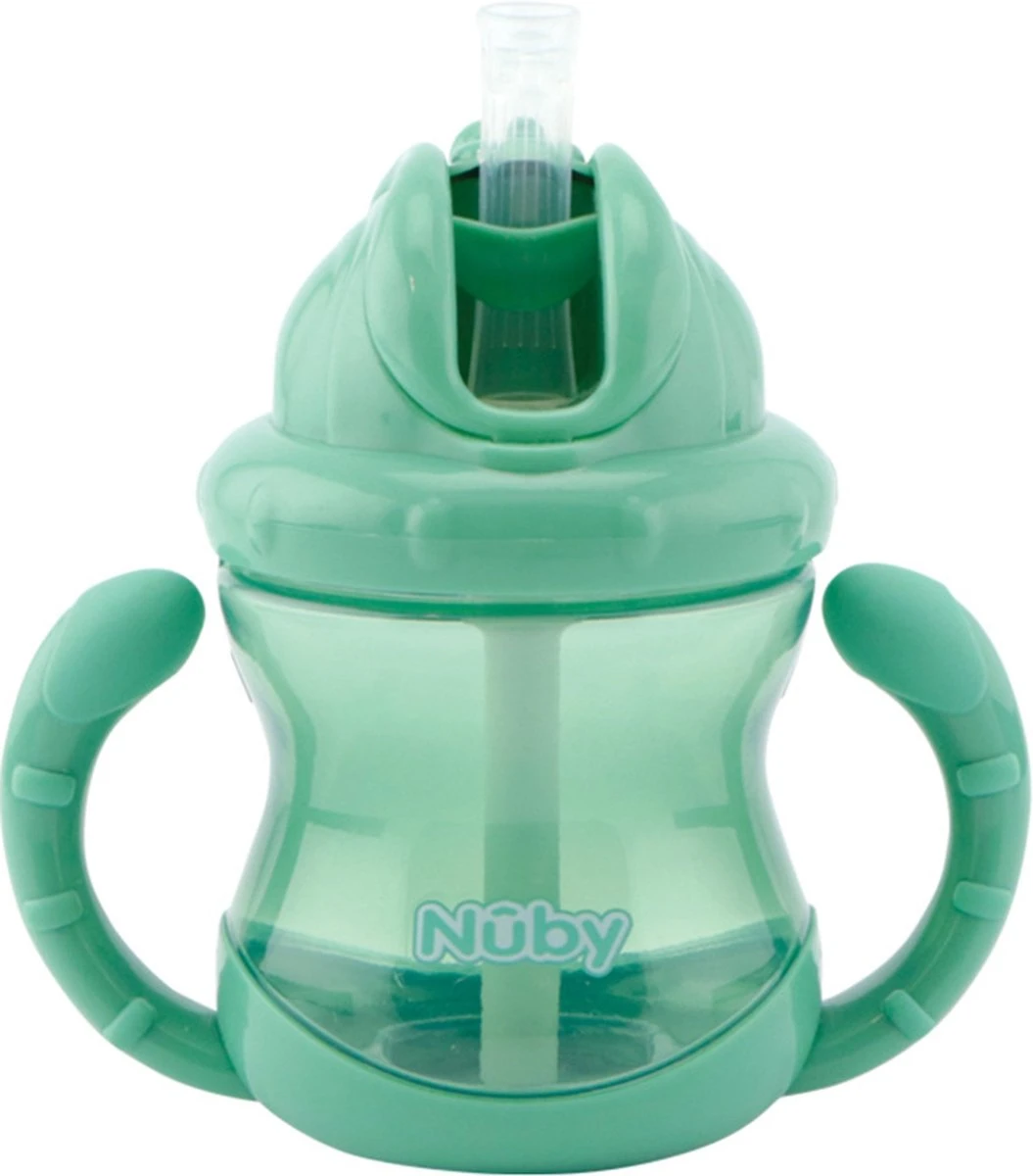 Le capuchon rabattable garde la paille propre lorsque la tasse Nûby n’est pas utilisée. Les poignées de cette tasse facilitent grandement la transition du biberon au gobelet.