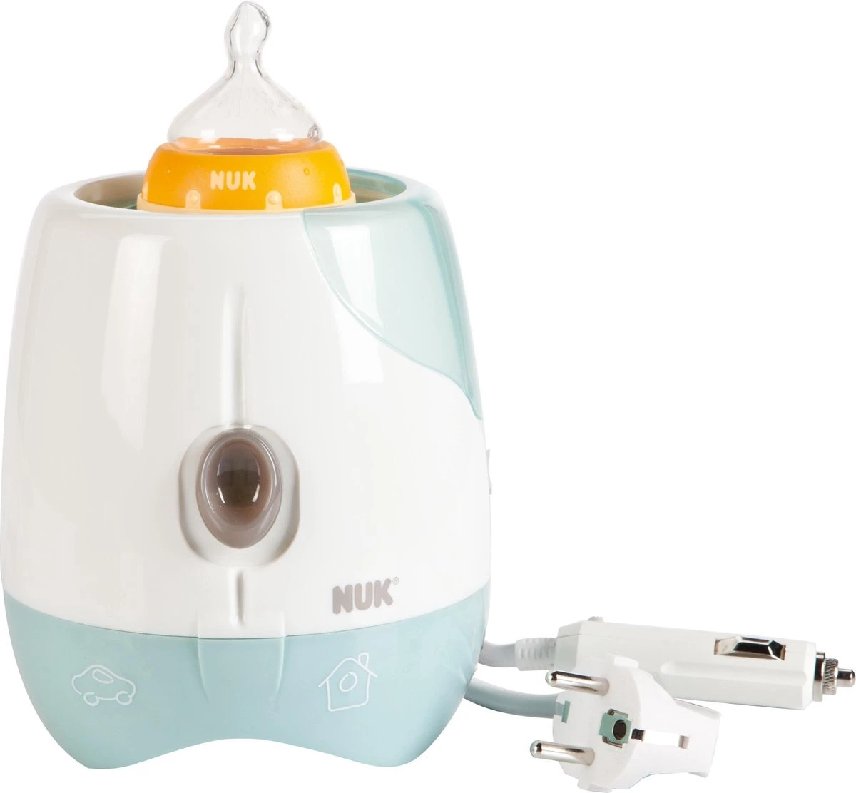 Le chauffe-biberon NUK Thermo Rapid chauffe vos biberons en 90 secondes et convient même à la route grâce à l’adaptateur pratique pour la connexion 12 volts dans la voiture. Le chauffe-biberon convient à toutes les tailles de biberons et désormais aussi aux bocaux grâce à un panier fourni. Ceci est idéal lorsque votre bébé grandit. De plus, le chauffe-biberon est convivial car il s’éteint automatiquement et dispose d’une balance intégrée.