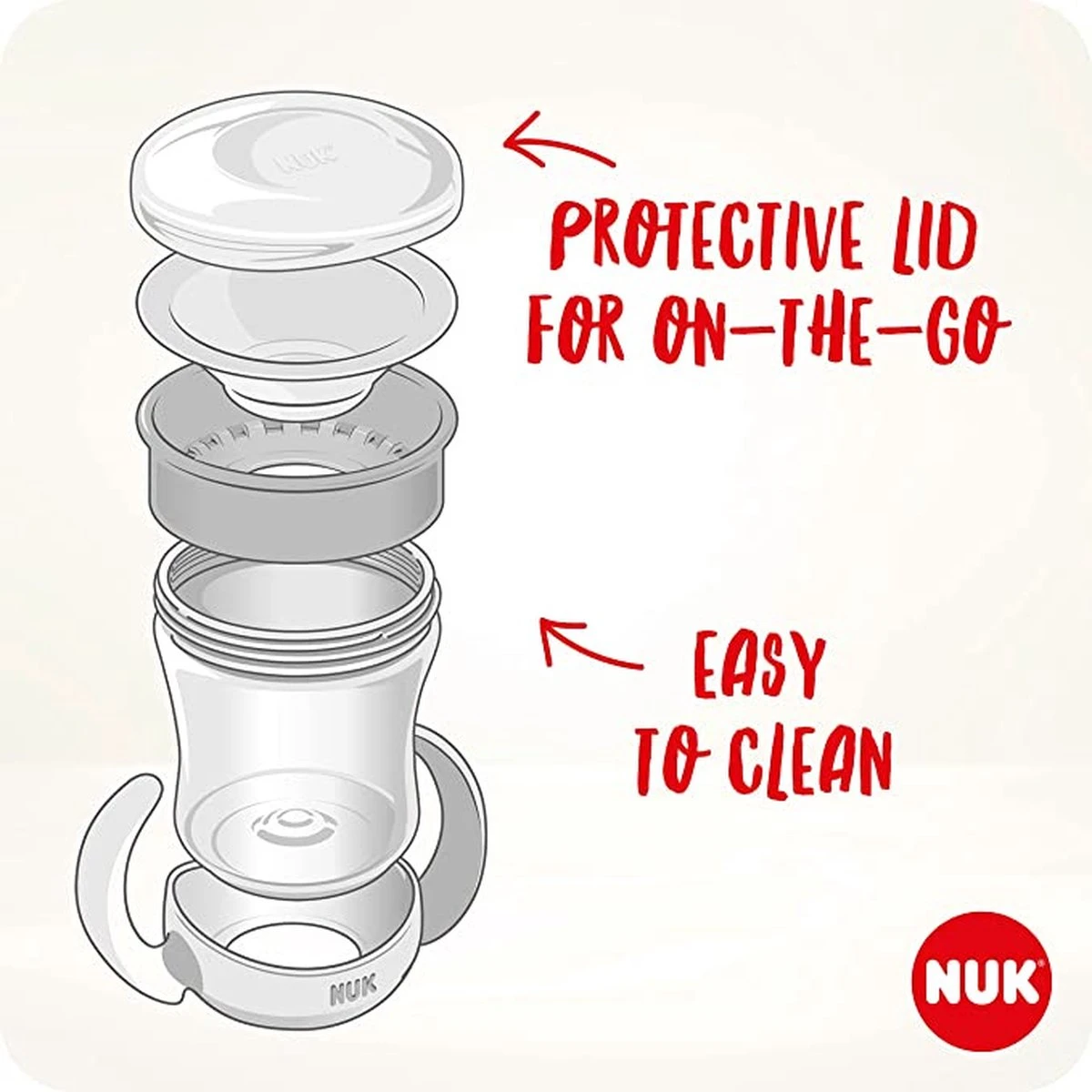 – Poignée facile : les poignées ergonomiques encouragent votre enfant à saisir le verre tandis que le couvercle le maintient propre pendant le voyage.