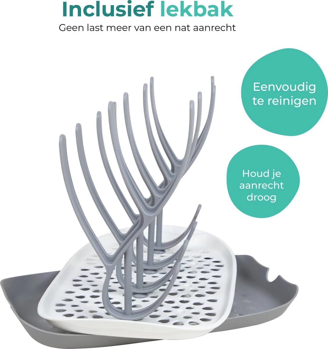 Notre nouveau séchoir à biberons amélioré est la solution idéale pour sécher les biberons et les accessoires de manière sûre et propre. Le séchoir a beaucoup d’espace pour que vous puissiez sécher les biberons, tétines et autres accessoires de manière sûre et hygiénique après le nettoyage et/ou l’ébullition. Le séchoir est équipé d’un bac d’égouttement afin que votre plan de travail reste toujours propre et sec. Notre séchoir est de haute qualité et facile à nettoyer à la main ou au lave-vaisselle.
