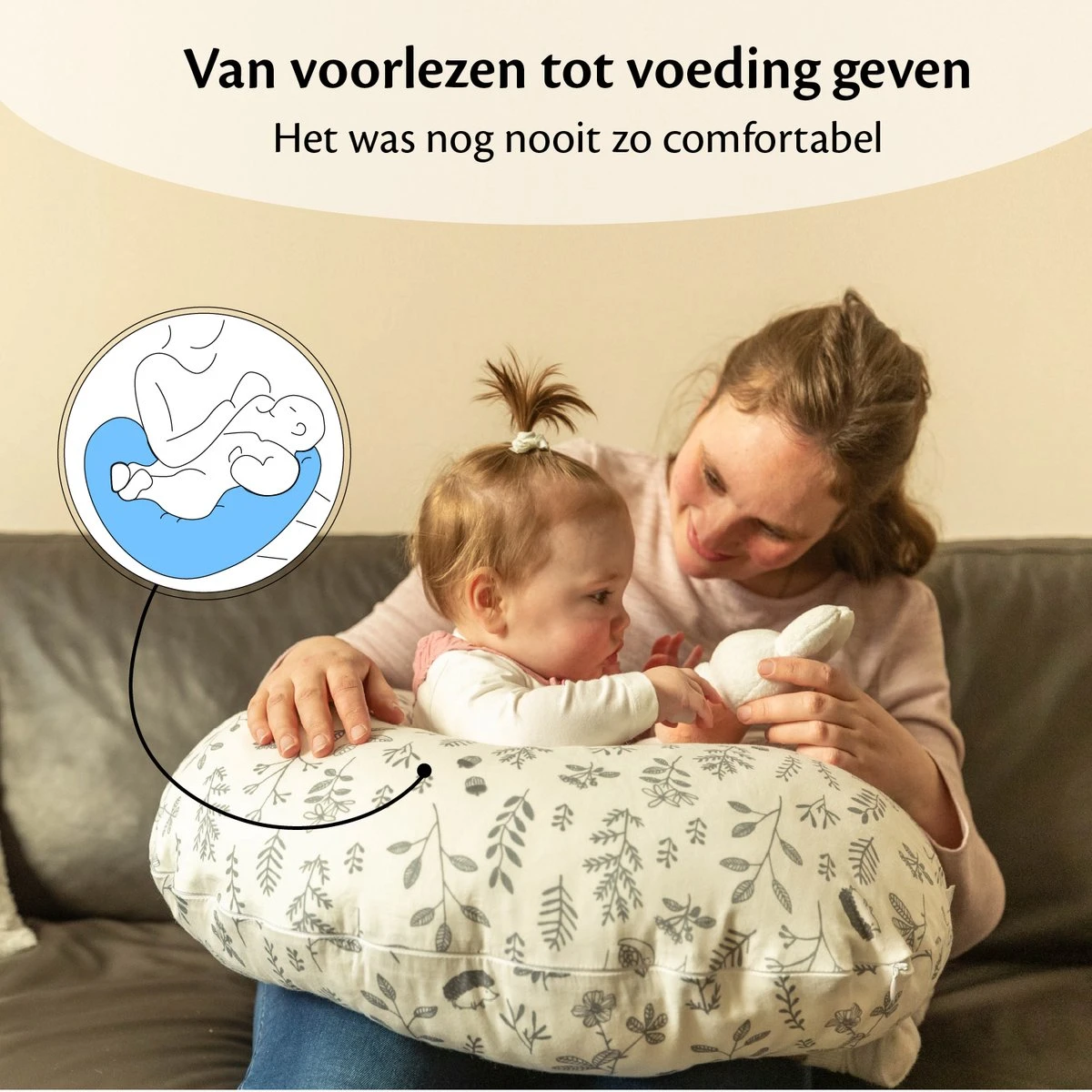 Oreiller D’allaitement Ella – Oreiller De Grossesse – Oreiller De Couchage Latéral – Plantes