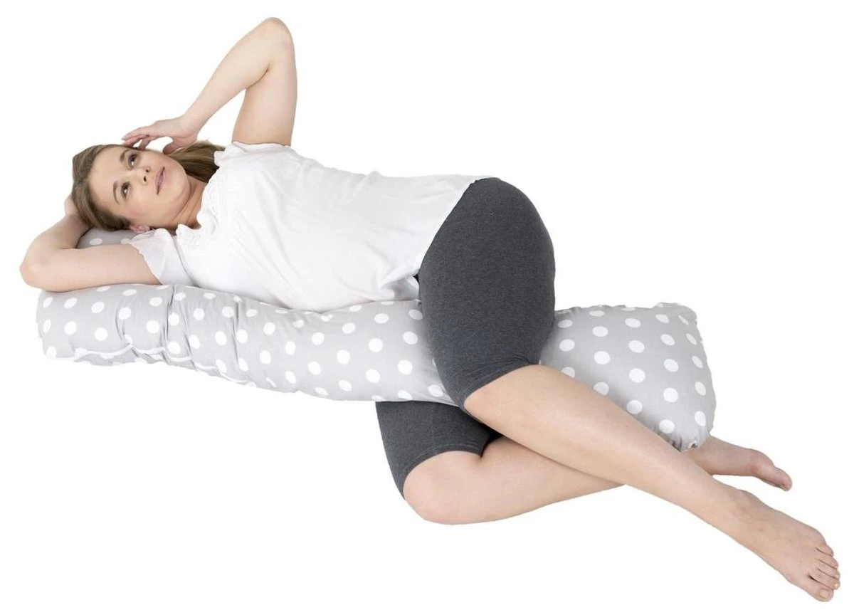 Oreiller D’allaitement / Oreillers De Grossesse | Forme J 235 Cm | Gris Avec Des Sphères Blanches