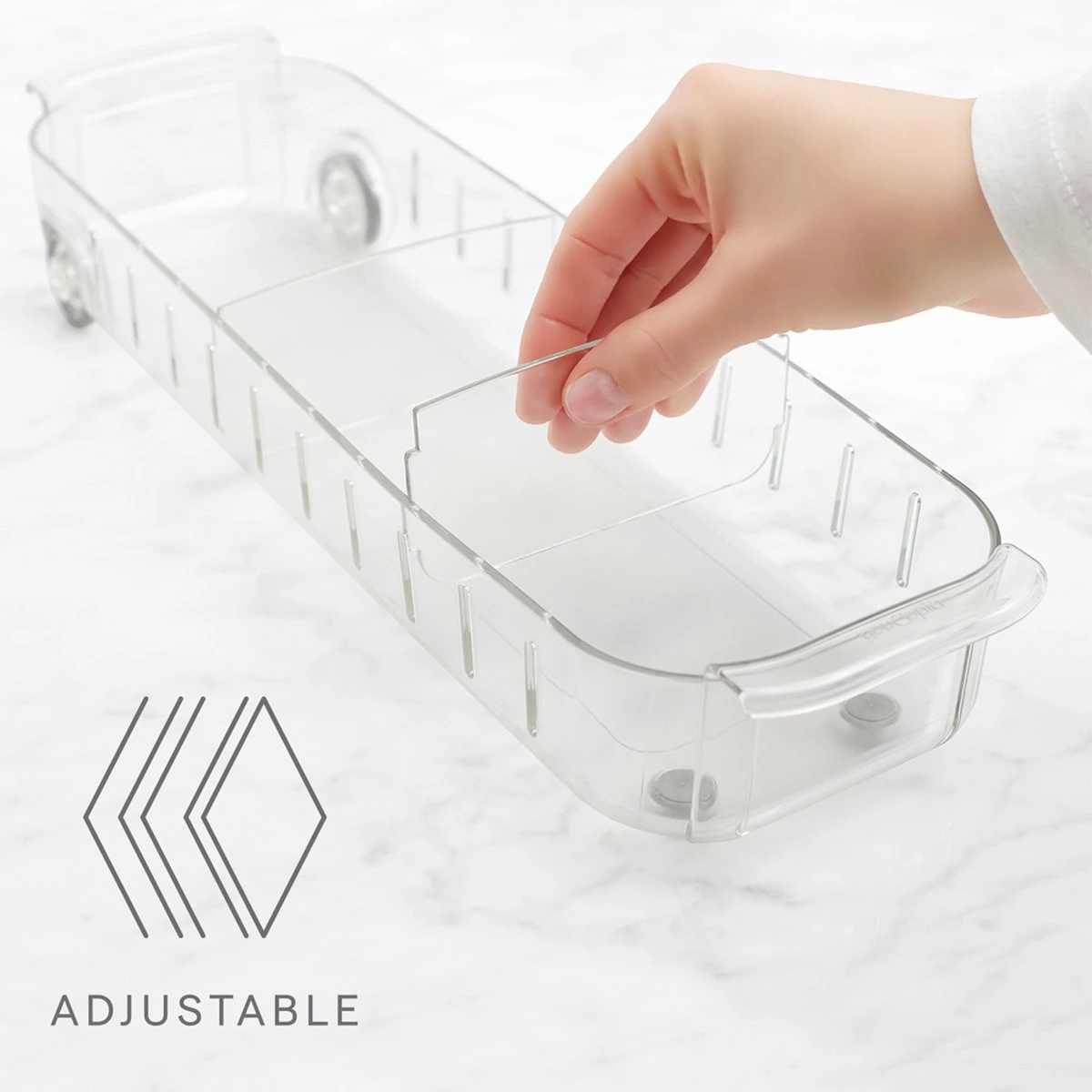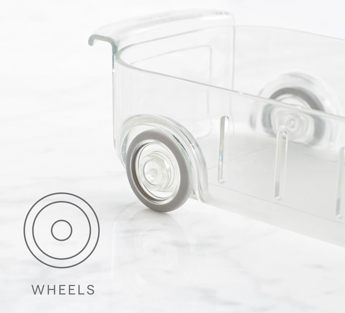 Les bacs de koelkast enroulables sont en plastique transparent sans BPA. Les bacs ont des roues et des poignées des deux kanten afin que vous puissiez retirer facilement et rapidement l’organisateur du réfrigérateur. Chaque exemplaire dispose également de deux intercalaires pour choisir vous-même la taille des compartiments de tri. Les unités de stockage n’ont pas besoin d’être montées, elles sont immédiatement prêtes à l’emploi. Disponible en trois tailles :