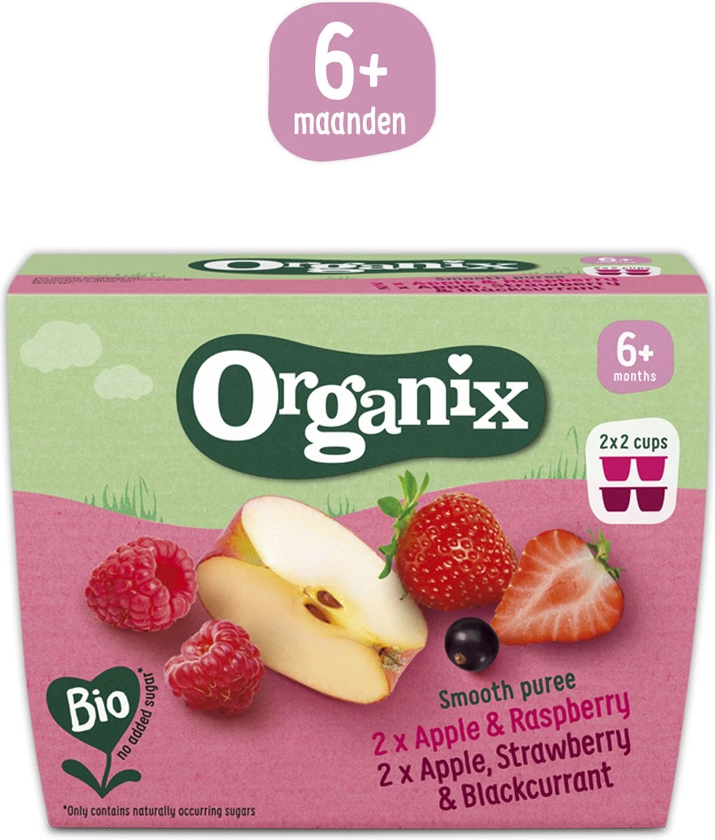 Contenu : 6x Organix 6+ Gobelets Pomme & Framboise + Pomme & Fraise & Cassis 4x100G