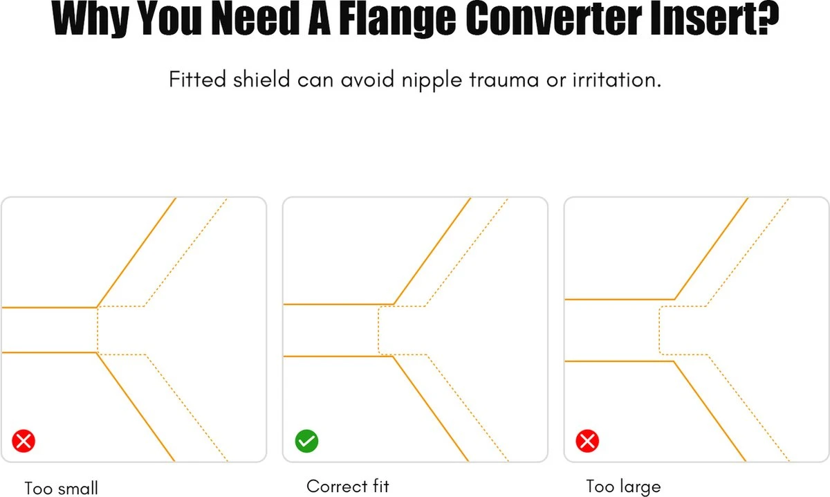 Ces réducteurs de téterelle peuvent être utilisés pour réduire la taille de votre tire-lait actuel. Par exemple, si vous avez une téterelle de 24 mm et que vous souhaitez la réduire, vous pouvez le faire avec ces réducteurs de téterelle. Réduisez votre téterelle à 21, 19 ou 17 mm. Toutes les pièces qui entrent en contact avec le lait maternel sont exemptes de BPA.