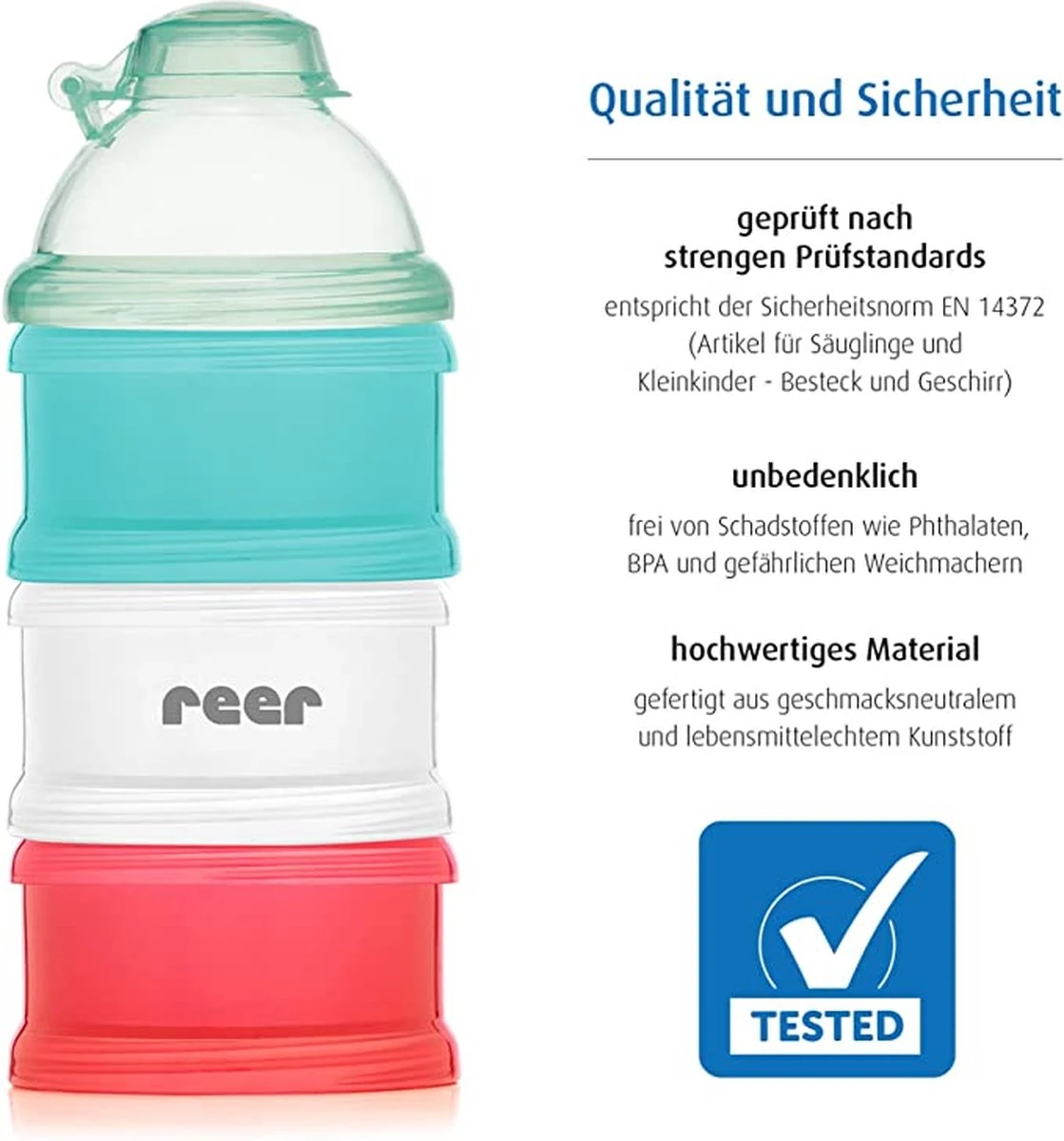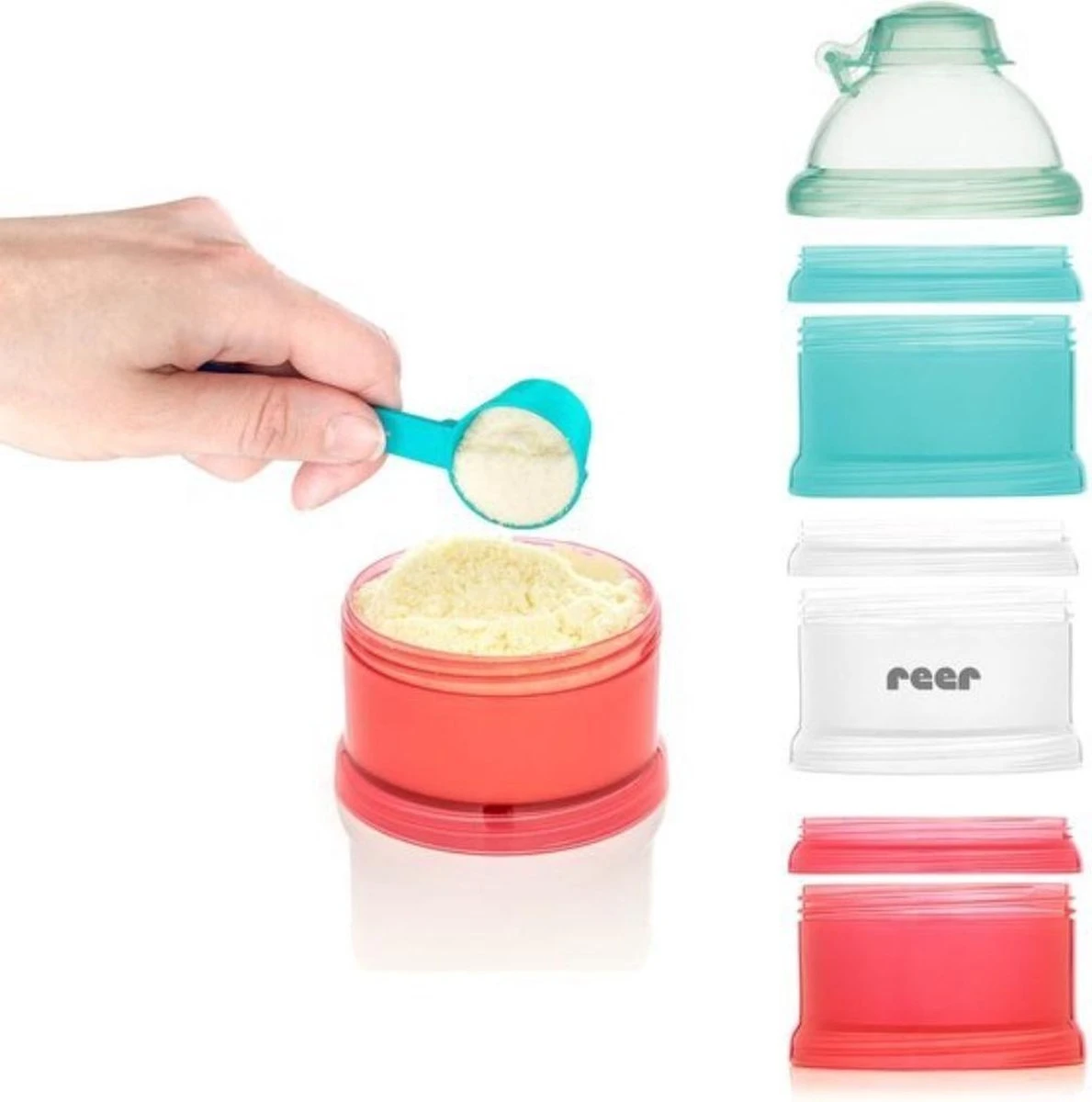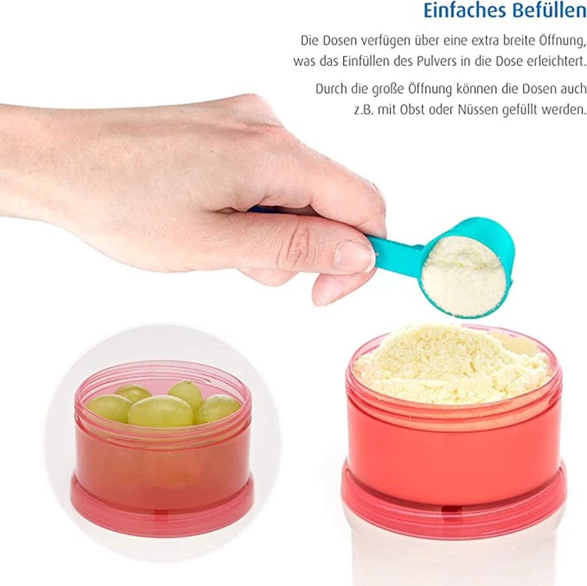 Se compose de 3 boîtes pour aliments pour bébé, contenant chacune un maximum de 40 g de lait en poudre, la cuillère à lait pour une journée entière