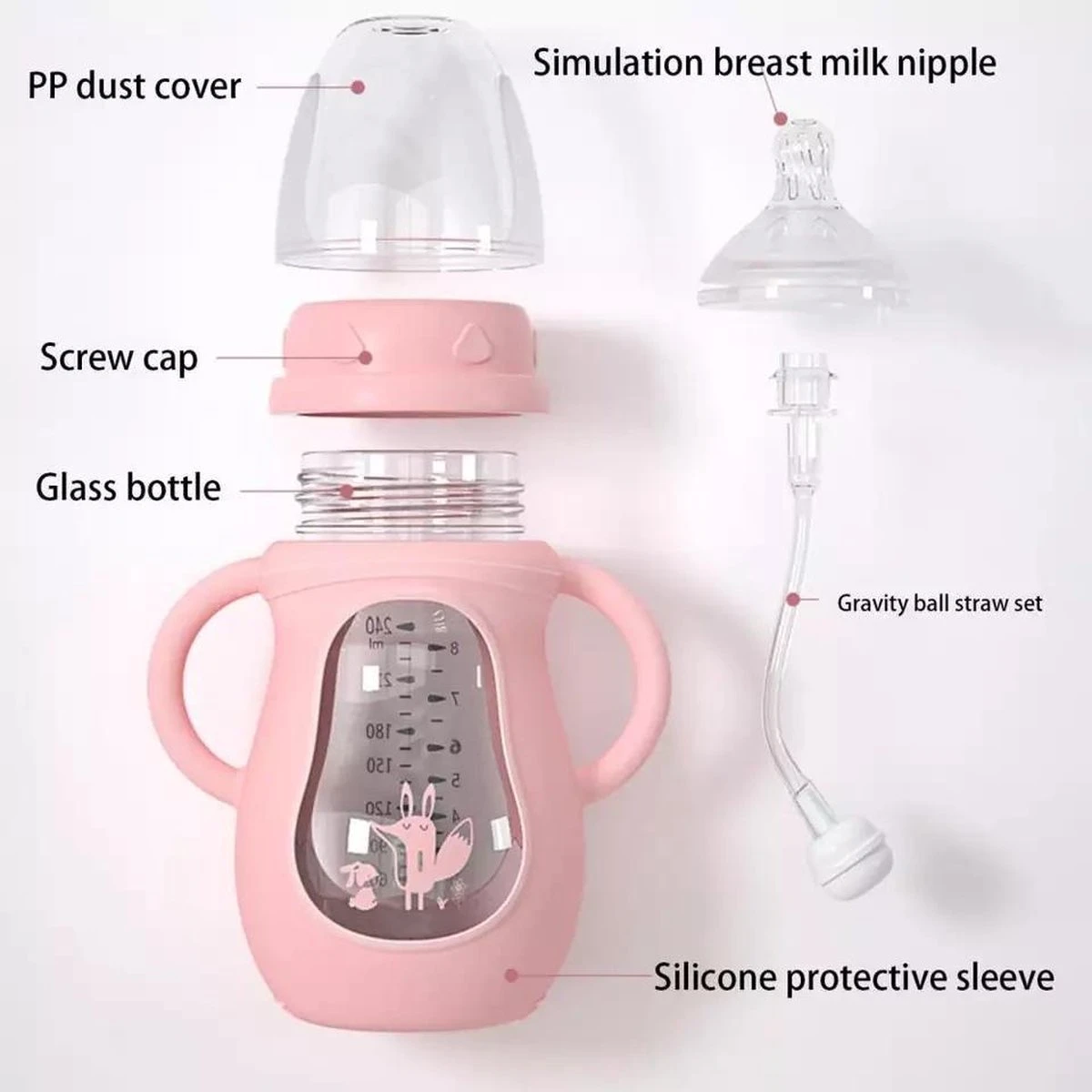 Rose Biberon, Biberon Rose, Nourriture Bébé, Bouteille En Verre De Bébé, Bébé, Biberons, Bouteilles En Verre Anti-coliques, Biberon Anti – Chutes, De Nourrir Au Biberon.