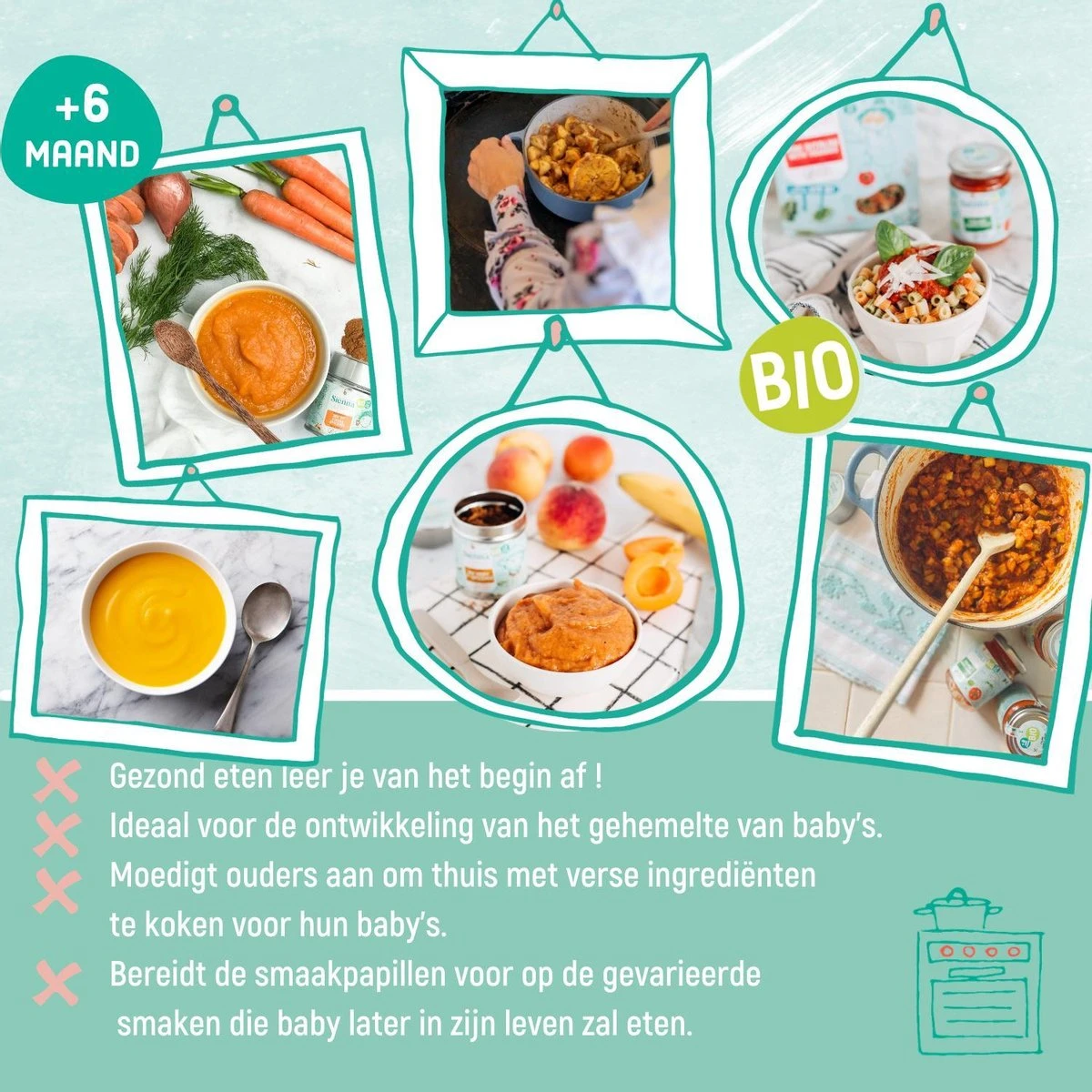PRODUITS BIO: Tous nos produits offrent aux bébés et aux enfants une qualité de produit irréprochable. 100% de nos produits sont issus de l’agriculture biologique. Geen sel et sans sucres ajoutés, sans gluten et sans additifs.