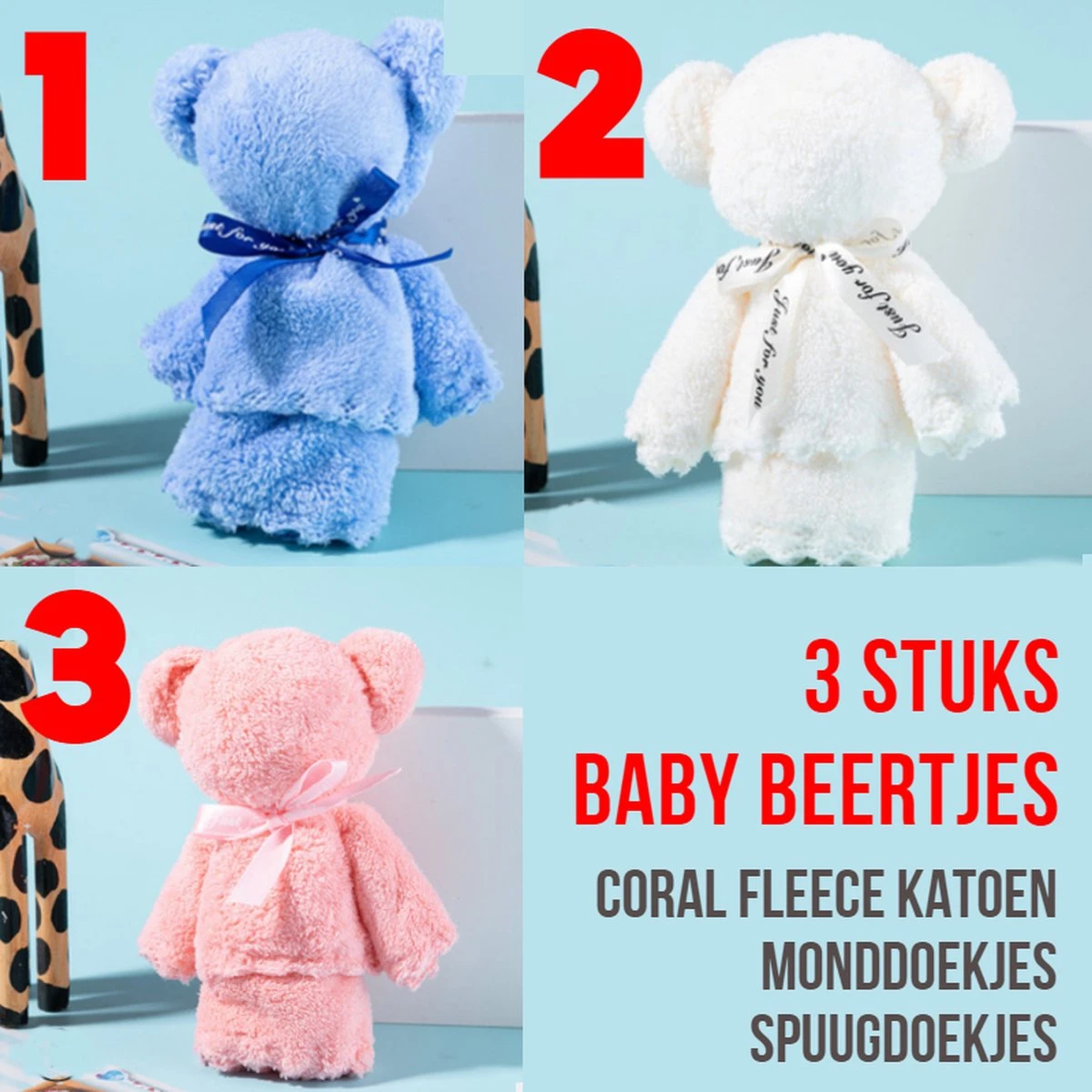 SET DE 3 PCS BABY Allernieuwste Bavoirs – Lingettes buccales – Lingettes Bébé les mains en coton molleton de Coral doux – 30 x 30 cm – Set 3x Bébé Bears