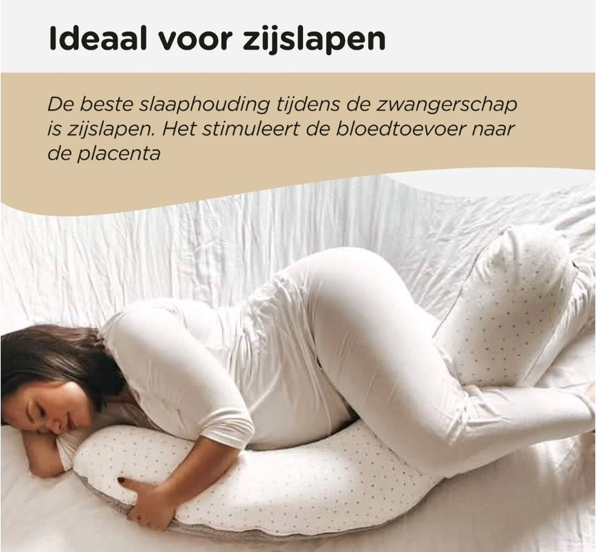 Le coussin de grossesse Snoozzz est un kussen en forme de U qui a été spécialement développé pour les femmes enceintes. Il offre un soutien pendant la grossesse et après l’accouchement. Dormir avec l’oreiller de grossesse assure une meilleure nuit de sommeil et réduit l’inconfort des maux de grossesse tels que les douleurs pelviennes, les maux de dos et les jambes sans repos. De nombreuses femmes ressentent des douleurs pelviennes ou une instabilité pelvienne pendant la grossesse. Ceci est très gênant et peut être douloureux. L’oreiller de grossesse soulage et veille à ce que vous dormiez bien pendant la grossesse. Il soutient également votre ventre de femme enceinte et tout votre corps. Bref, le coussin de grossesse est un compagnon de sommeil indispensable pendant la grossesse.
