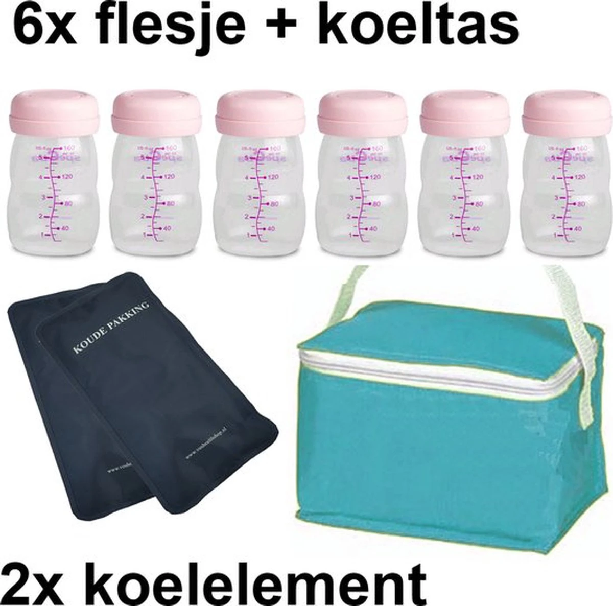 Spectra Biberons De Lait Maternel – 6 X 160 Ml – Avec Sac De Refroidissement Rose Et éléments De Refroidissement – Biberons D’allaitement – Sans BPA