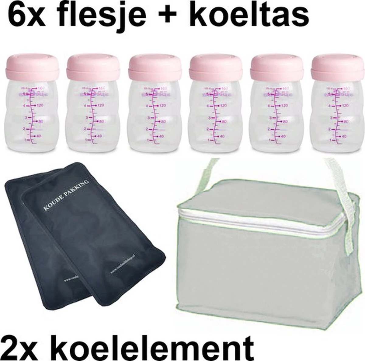Biberons pratiques de conservation du lait maternel de la marque Spectra ,avec sac de refroidissement pratique comprenant deux éléments de refroidissement plats. Perfect pour conserver le lait maternel au koelkast ou au congélateur. Les bouteilles sont faites deMatériau sans BPA et le contenu de la bouteille est160ml , avec indication de taille. Les biberons conviennent à une utilisation dans le stérilisateur à micro-ondes. Avec bouchon d’étanchéité, tétine exclusive.