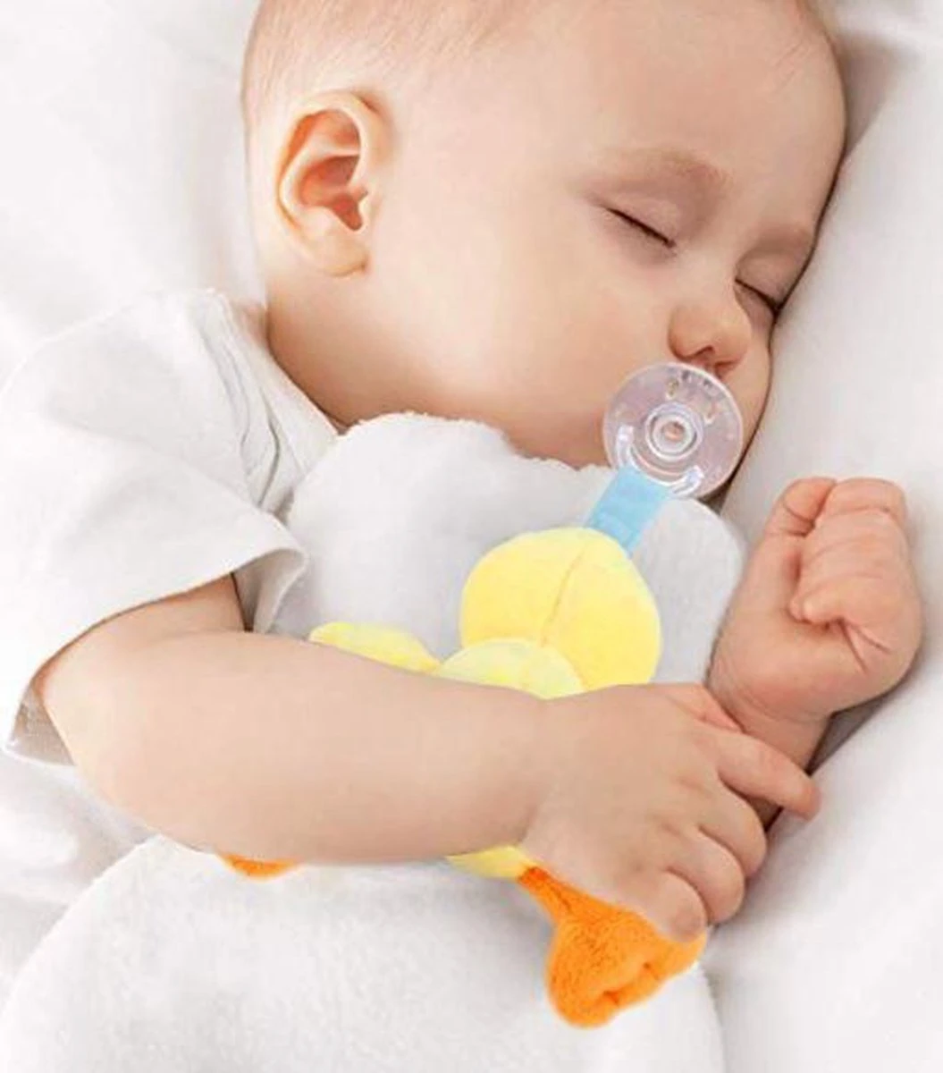 Le porte-tétine câlin maintient la tétine du bébé à proximité et l’empêche de se perdre, de tomber ou de se perdre.