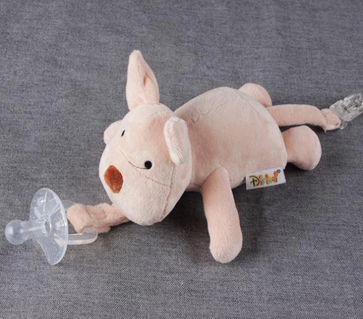Vous pouvez facilement attacher la tétine avec la fermeture Velcro. Il y a un clip sur la queue que vous pouvez facilement attacher à n’importe quel vêtement.