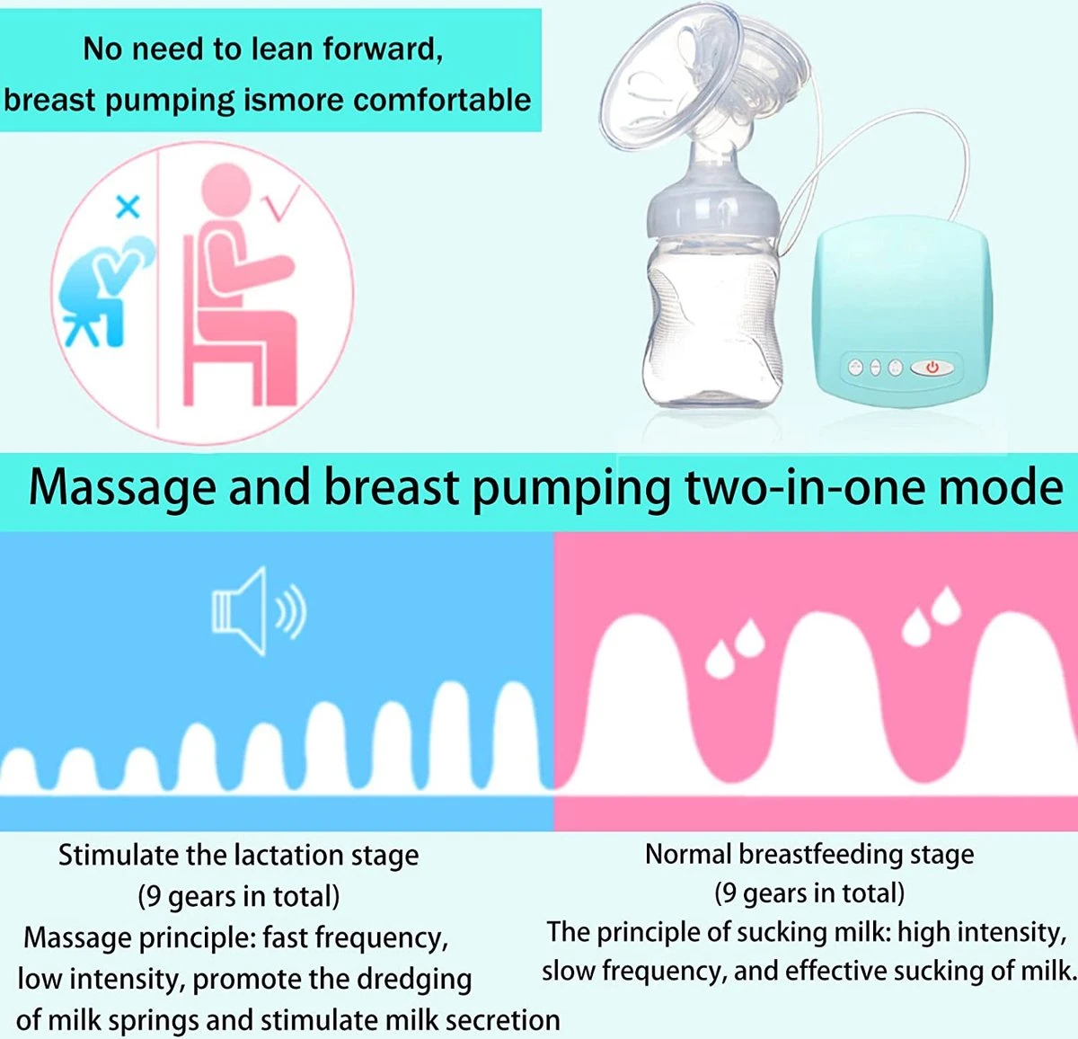 Tire-lait électrique, Tire-lait Portable, Tire-lait, Massage Du Sein Avec 2 Modes Et 9 Niveaux D’aspiration, Tire-lait Sans BPA