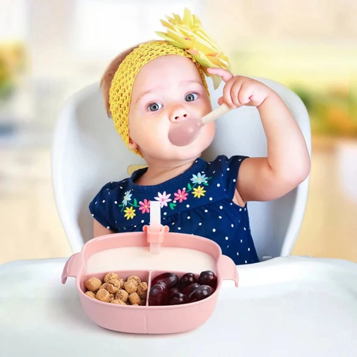 Bol de nourriture pour Bébé Tous les parents connaissent le problème : comment s’assurer que votre enfant reçoive également une alimentation suffisante pendant qu’il est sur la route ? Heureusement, il existe des solutions simples à ce genre de problèmes. Ce bol alimentaire est donc un incontournable pour tous les parents qui aiment sortir avec le bébé. Mais ce bol alimentaire est également très pratique pour une utilisation à la maison. Il est non seulement robuste mais également fabriqué en silicone non toxique. Cela signifie qu’il n’y a aucun risque lorsque votre enfant met ses dents dans le bol de nourriture. En fait : c’est bien, car cela renforce les dents de votre tout-petit. Vous n’avez pas à vous soucier que votre enfant jette l’assiette de la table. La ventouse maintient fermement l’assiette sur la table. Cet ensemble comprend également un couvercle pour couvrir la planche.