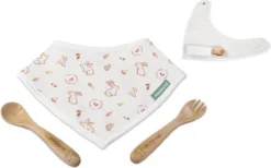 Bavoir Et Couverts Miniland En Bois De Lapin / Coton Wit 3 Pièces