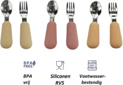 3 Sets – Couverts Bébé – Fourchette Et Cuillère – Set De Couverts Enfant – Beige Rose