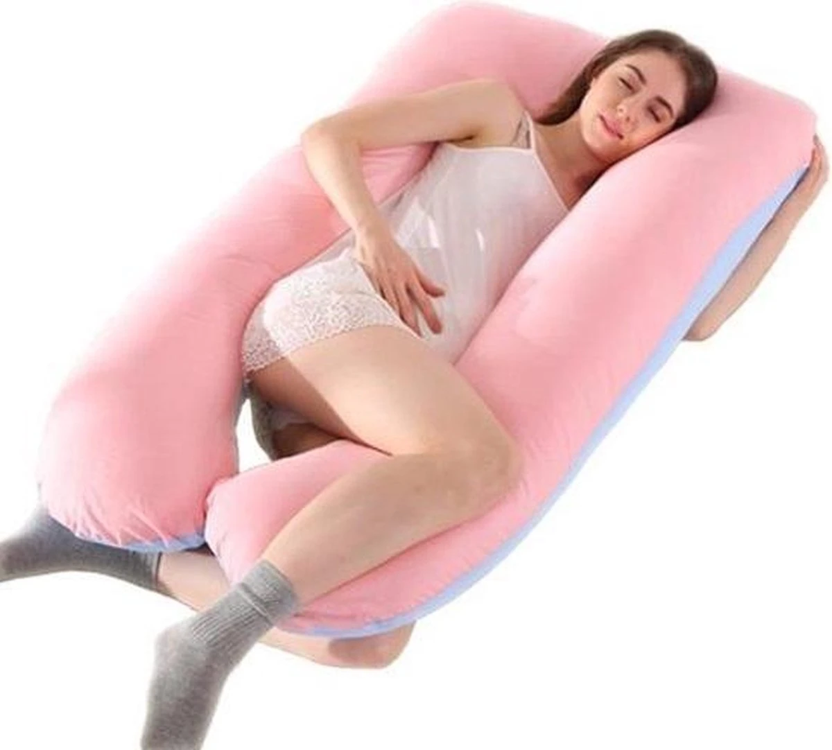 WiseGoods – Oreiller De Grossesse Premium – Coussin D’allaitement – Coussin De Couchage En Forme De U – Dormeuses Latérales – Rose / Bleu