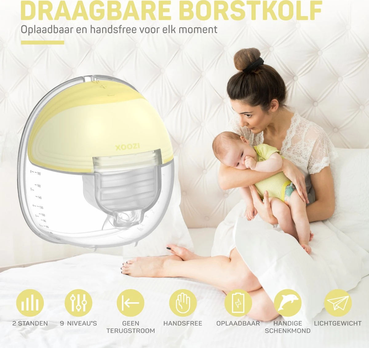 Le tire-lait mains libres sans fil XOOZI offre les meilleurs soins possibles voor jou et votre bébé. Grâce aux dernières technologies, vous pouvez désormais allaiter confortablement et sans soucis.