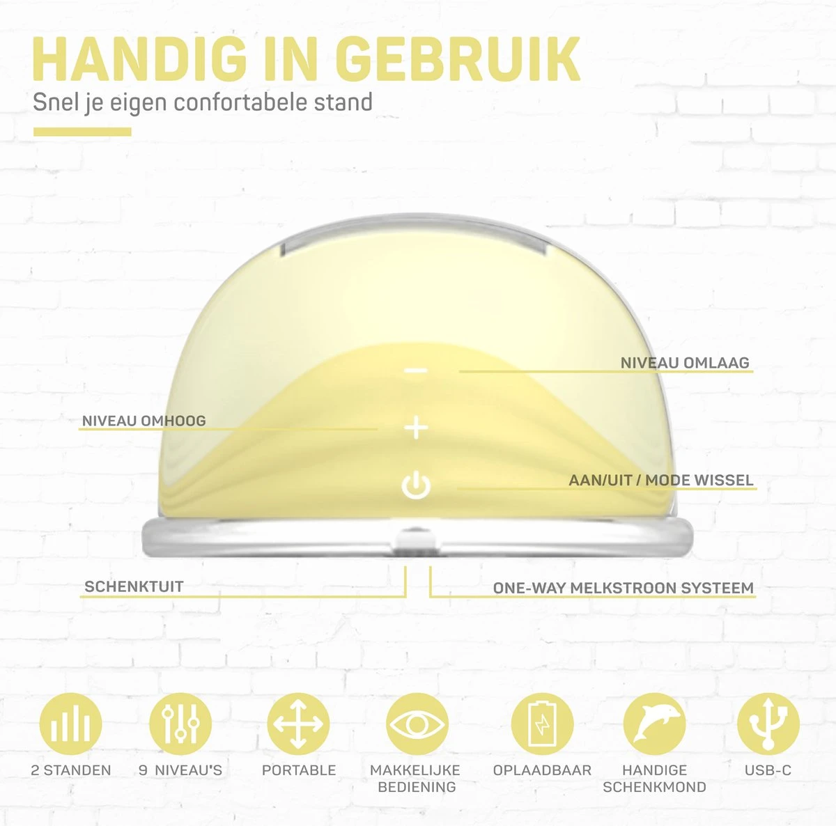 Notre tire-lait est rechargeable par USB, jusqu’à 2,5 heures d’utilisation à pleine puissance avec la puissante batterie Li-ion de 1000 mAh. Vous pouvez charger la flasque via la plupart des chargeurs USB-C de téléphone, un ordinateur portable, une banque d’alimentation ou dans votre voiture, ce qui en fait une option pratique pour une utilisation en déplacement.